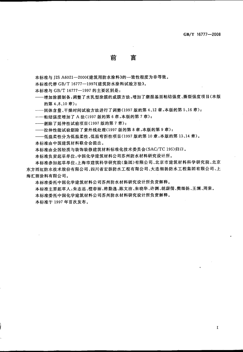 建筑防水深种试验力达Testmethodsforbuildingwaterproofingcoatings-06-30发布中华人民共和国国家质量监督检验检疫总局中国国家标准化管理委员会2009-04-01实施发布348072@abc6天前发布关注私信0.89MB20页028建筑防水深种试验力达Testmethodsforbuildingwaterproofingcoatings-06-30发布中华人民共和国国家质量监督检验检疫总局中国国家标准化管理委员会2009-04-01实施发布此内容为付费资源,请付费后查看¥23¥36黄金会员免费钻石会员免费立即购买您当前未登录!建议登陆后购买,可保存购买订单付费资源 第1页 / 共20页 第2页 / 共20页 第3页 / 共20页 第4页 / 共20页 第5页 / 共20页 试读已结束,还剩15页,您可下载完整版后进行离线阅读 THE END标准规范 文本预览 1CS91.120.30Q17中华人民共和国国家标准GB/T16777一2008代替GB/T16777-1997建筑防水涂料试验方法Test methods for building waterproofing coatings2008-06-30发布2009-04-01实施中华人民共和国国家质量监督检验检疫总局中国国家标准化管理委员会发布 查看更多 收起部分 喜欢就支持一下吧收藏