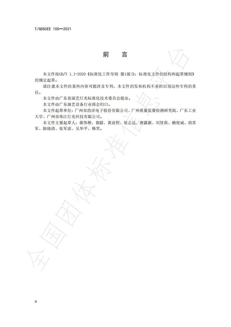 户外电脑灯Outdoor-usingmovinglights348072@abc7天前发布关注私信0.30MB12页044户外电脑灯Outdoor-usingmovinglights此内容为付费资源,请付费后查看¥23¥36黄金会员免费钻石会员免费立即购买您当前未登录!建议登陆后购买,可保存购买订单付费资源 第1页 / 共12页 第2页 / 共12页 第3页 / 共12页 第4页 / 共12页 第5页 / 共12页 试读已结束,还剩7页,您可下载完整版后进行离线阅读 THE END标准规范 文本预览 ICS29.140.40TGDSCEEK73广东演艺设备行业商会团体标准T/GDSCEE 105-2021户外电脑灯Outdoor-using moving lights国团体2021-09-30发布2021-10-08实施广东演艺设备行业商会发布 查看更多 收起部分 喜欢就支持一下吧收藏