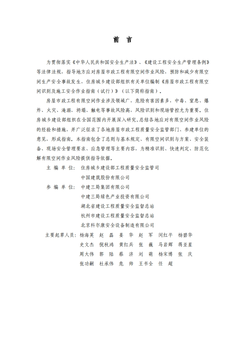 房屋市政工程有限空间识别及施工安全作业指南(试行)348072@abc7天前发布关注私信7.34MB32页049房屋市政工程有限空间识别及施工安全作业指南(试行)此内容为付费资源,请付费后查看¥23¥36黄金会员免费钻石会员免费立即购买您当前未登录!建议登陆后购买,可保存购买订单付费资源 第1页 / 共32页 第2页 / 共32页 第3页 / 共32页 第4页 / 共32页 第5页 / 共32页 试读已结束,还剩27页,您可下载完整版后进行离线阅读 THE END标准规范 文本预览 房屋市政工程有限空间识别及施工安全作业指南(试行)2025年6月 查看更多 收起部分 喜欢就支持一下吧收藏
