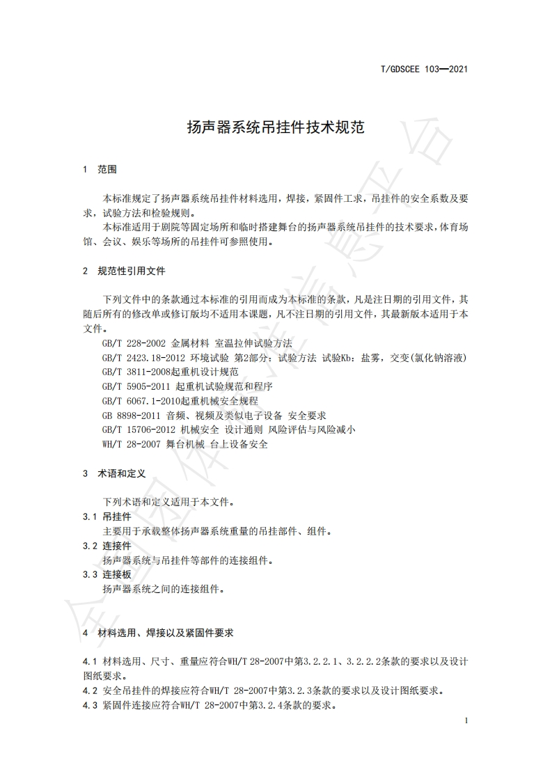 扬声器系统吊挂件技术规范Specificationforinspectionofloudspeakersystemhangers348072@abc7天前发布关注私信0.24MB7页036扬声器系统吊挂件技术规范Specificationforinspectionofloudspeakersystemhangers此内容为付费资源,请付费后查看¥23¥36黄金会员免费钻石会员免费立即购买您当前未登录!建议登陆后购买,可保存购买订单付费资源 第1页 / 共7页 第2页 / 共7页 第3页 / 共7页 第4页 / 共7页 第5页 / 共7页 试读已结束,还剩2页,您可下载完整版后进行离线阅读 THE END标准规范 文本预览 ICS29.140.40TGDSCEEK73广东演艺设备行业商会团体标准T/GDSCEE 103-2021扬声器系统吊挂件技术规范Specification for inspection ofloudspeaker system hangers国团体2021-09-30发布2021-10-08实施广东演艺设备行业商会发布 查看更多 收起部分 喜欢就支持一下吧收藏