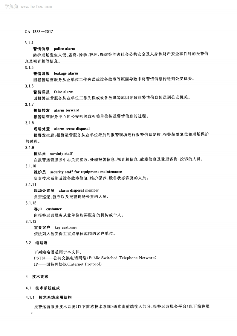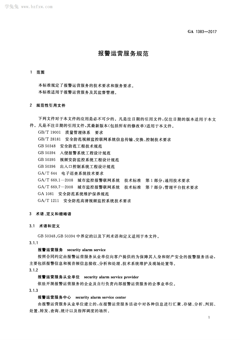 报警运营服务规范Specificationsforsecurityalarmservices_报警运营服务规范Specificationsforsecurityalarmservices348072@abc7天前发布关注私信1.45MB18页050报警运营服务规范Specificationsforsecurityalarmservices_报警运营服务规范Specificationsforsecurityalarmservices此内容为付费资源,请付费后查看¥23¥36黄金会员免费钻石会员免费立即购买您当前未登录!建议登陆后购买,可保存购买订单付费资源 第1页 / 共18页 第2页 / 共18页 第3页 / 共18页 第4页 / 共18页 第5页 / 共18页 试读已结束,还剩13页,您可下载完整版后进行离线阅读 THE END标准规范 文本预览 1CS13.310A91GA中华人民共和国公共安全行业标准GA1383-2017报警运营服务规范Specifications for security alarm services2017-02-22发布2017-05-01实施中华人民共和国公安部发布 查看更多 收起部分 喜欢就支持一下吧收藏