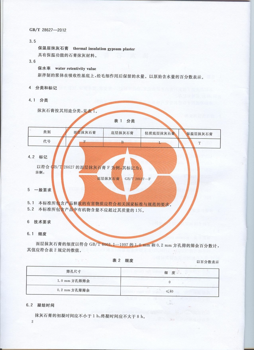 抹灰石膏Gypsumplaster348072@abc7天前发布关注私信3.14MB11页049抹灰石膏Gypsumplaster此内容为付费资源,请付费后查看¥23¥36黄金会员免费钻石会员免费立即购买您当前未登录!建议登陆后购买,可保存购买订单付费资源 第1页 / 共11页 第2页 / 共11页 第3页 / 共11页 第4页 / 共11页 第5页 / 共11页 试读已结束,还剩6页,您可下载完整版后进行离线阅读 THE END标准规范 文本预览 1CS91.100.10Q13gB中华人民共和国国家标准GB/T28627-2012抹灰石膏Gypsum plaster2012-07-31发布2013-02-01实施中华人民共和国国家质量监督检验检疫总局中国国家标准化管理委员会发布 查看更多 收起部分 喜欢就支持一下吧收藏