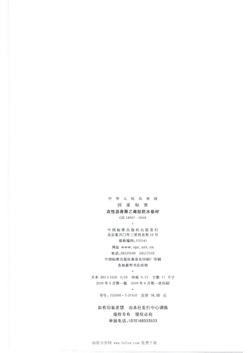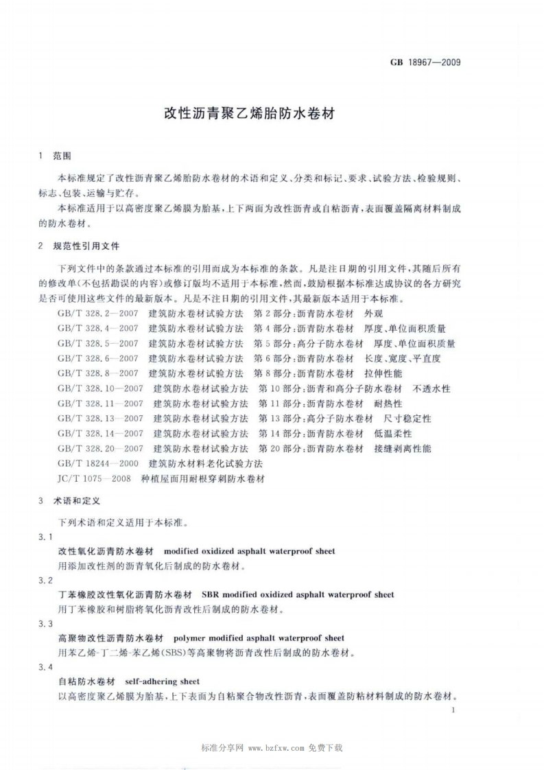 改性沥青聚乙烯胎防水卷材Modifiedbituminouswaterproofsheetusingpolyethylenereinforcement348072@abc7天前发布关注私信1.27MB11页046改性沥青聚乙烯胎防水卷材Modifiedbituminouswaterproofsheetusingpolyethylenereinforcement此内容为付费资源,请付费后查看¥23¥36黄金会员免费钻石会员免费立即购买您当前未登录!建议登陆后购买,可保存购买订单付费资源 第1页 / 共11页 第2页 / 共11页 第3页 / 共11页 第4页 / 共11页 第5页 / 共11页 试读已结束,还剩6页,您可下载完整版后进行离线阅读 THE END标准规范 文本预览 1CS91.120.30Q17GB中华人民共和国国家标准GB18967-2009代替GB18967-2003改性沥青聚乙烯胎防水卷材Modified bituminous waterproof sheet using polyethylene reinforcement2009-03-28发布2010-03-01实施中华人民共和国国家质量监督检验检疫总局中国国家标准化管理委员会发布数码防伪 查看更多 收起部分 喜欢就支持一下吧收藏