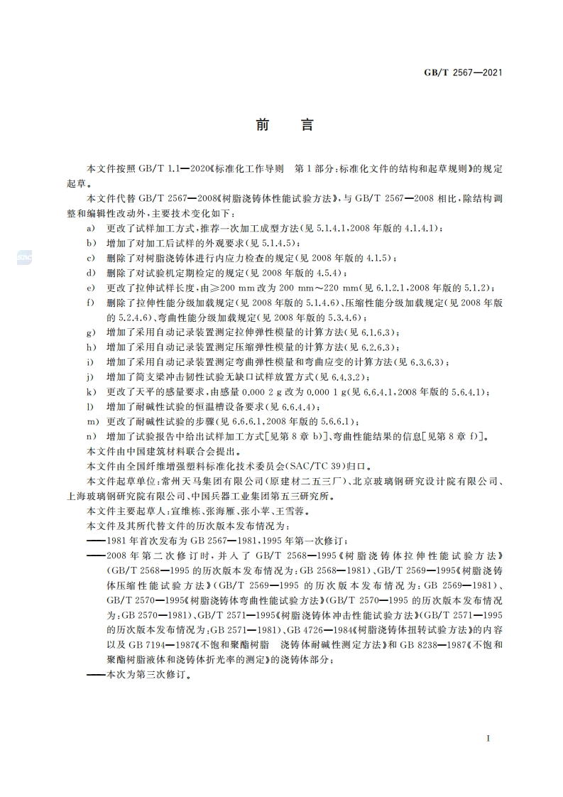树脂浇铸体性能试验方法Testmethodsforpropertiesofresincastingbody348072@abc7天前发布关注私信1.68MB21页022树脂浇铸体性能试验方法Testmethodsforpropertiesofresincastingbody此内容为付费资源,请付费后查看¥23¥36黄金会员免费钻石会员免费立即购买您当前未登录!建议登陆后购买,可保存购买订单付费资源 第1页 / 共21页 第2页 / 共21页 第3页 / 共21页 第4页 / 共21页 第5页 / 共21页 试读已结束,还剩16页,您可下载完整版后进行离线阅读 THE END标准规范 文本预览 ICS83.120CCS Q 23B中华人民共和国国家标准GB/T2567-2021代替GB/T2567一2008树脂浇铸体性能试验方法Test methods for properties of resin casting body2021-08-20发布2022-03-01实施国家市场监督管理总局发布国家标准化管理委员会 查看更多 收起部分 喜欢就支持一下吧收藏
