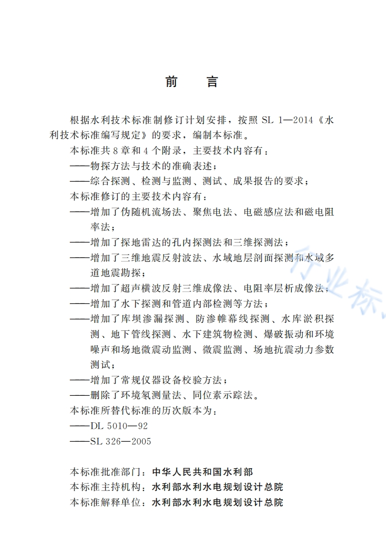 水利水电工程勘探规范物探348072@abc7天前发布关注私信13.86MB385页021水利水电工程勘探规范物探此内容为付费资源,请付费后查看¥23¥36黄金会员免费钻石会员免费立即购买您当前未登录!建议登陆后购买,可保存购买订单付费资源 第1页 / 共385页 第2页 / 共385页 第3页 / 共385页 第4页 / 共385页 第5页 / 共385页 试读已结束,还剩380页,您可下载完整版后进行离线阅读 THE END标准规范 文本预览 ICS91.080.40P13SL中华人民共和国水利行业标准SL/T291.1-2021替代SL326-2005水利水电工程勘探规程第1部分:物探Code for exploration of water resources andhydropower projectsPart 1:geophysical exploration息服2021-07-01发布2021-10-01实施中华人民共和国水利部发布 查看更多 收起部分 喜欢就支持一下吧收藏