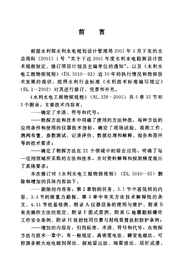 水利水电工程物探规程348072@abc7天前发布关注私信3.91MB184页023水利水电工程物探规程此内容为付费资源,请付费后查看¥23¥36黄金会员免费钻石会员免费立即购买您当前未登录!建议登陆后购买,可保存购买订单付费资源 第1页 / 共184页 第2页 / 共184页 第3页 / 共184页 第4页 / 共184页 第5页 / 共184页 试读已结束,还剩179页,您可下载完整版后进行离线阅读 THE END标准规范 文本预览 1CS91.080.40P13SL中华人民共和国水利行业标准SL326-2005替代DL5010—92水利水电工程物探规程Code for engineering geophysical exploration of waterresourees and hydropower2005-08-15发布2005-11-01实施中华人民共和国水利部发布 查看更多 收起部分 喜欢就支持一下吧收藏