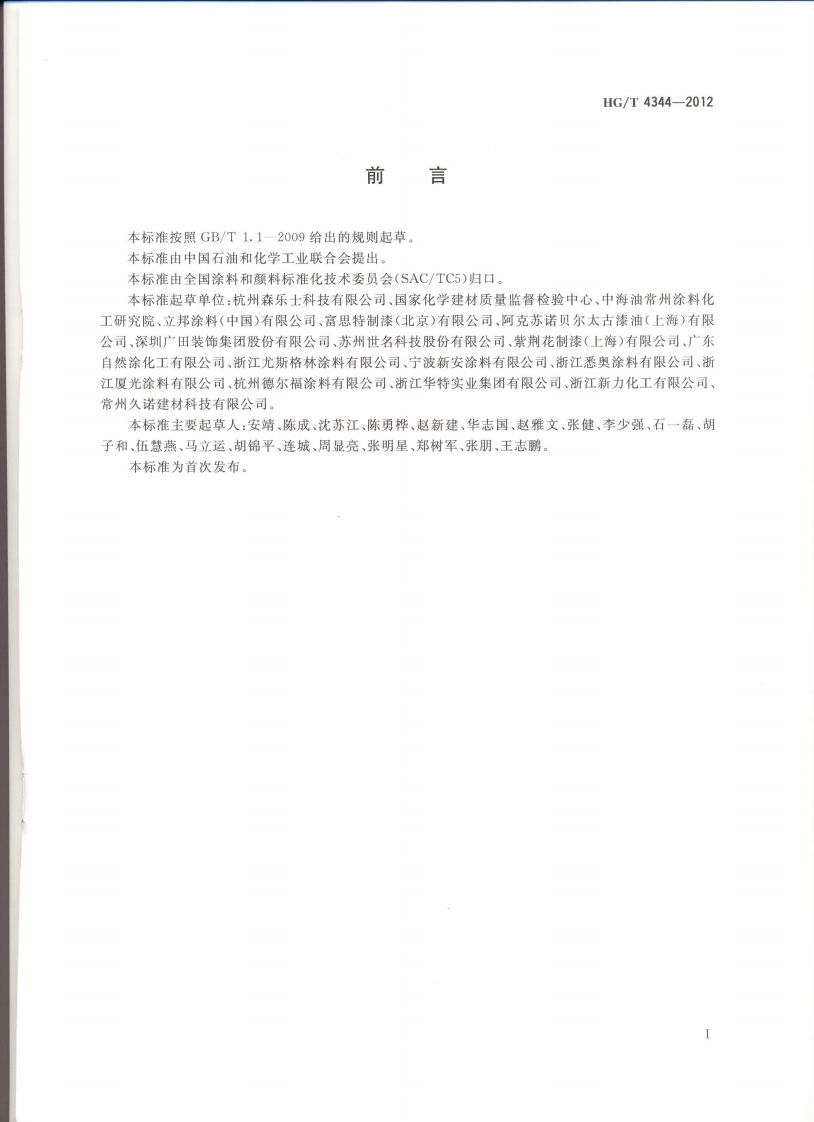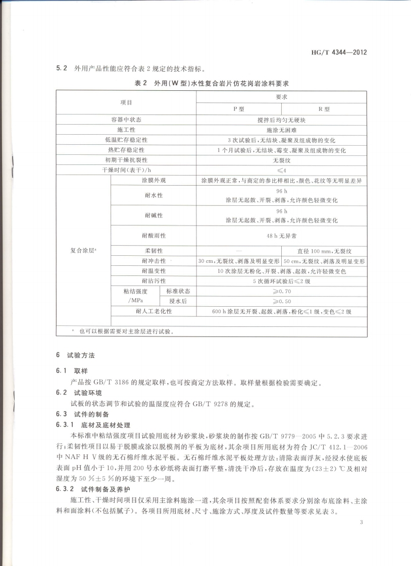 水性复合岩片仿花岗岩涂料Waterbornecompoundrocksliverbasedgranite-likecoatings348072@abc7天前发布关注私信3.41MB9页042水性复合岩片仿花岗岩涂料Waterbornecompoundrocksliverbasedgranite-likecoatings此内容为付费资源,请付费后查看¥23¥36黄金会员免费钻石会员免费立即购买您当前未登录!建议登陆后购买,可保存购买订单付费资源 第1页 / 共9页 第2页 / 共9页 第3页 / 共9页 第4页 / 共9页 第5页 / 共9页 试读已结束,还剩4页,您可下载完整版后进行离线阅读 THE END标准规范 文本预览 1CS87.040G51备案号:37879一2013HG中华人民共和国化工行业标准HG/T4344-2012水性复合岩片仿花岗岩涂料Waterborne compound rock sliver based granite-like coatings2012-11-07发布2013-03-01实施中华人民共和国工业和信息化都发布 查看更多 收起部分 喜欢就支持一下吧收藏