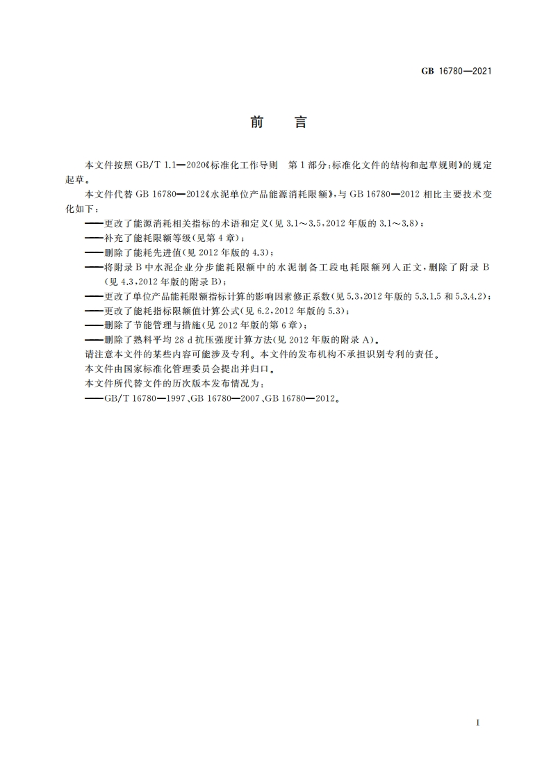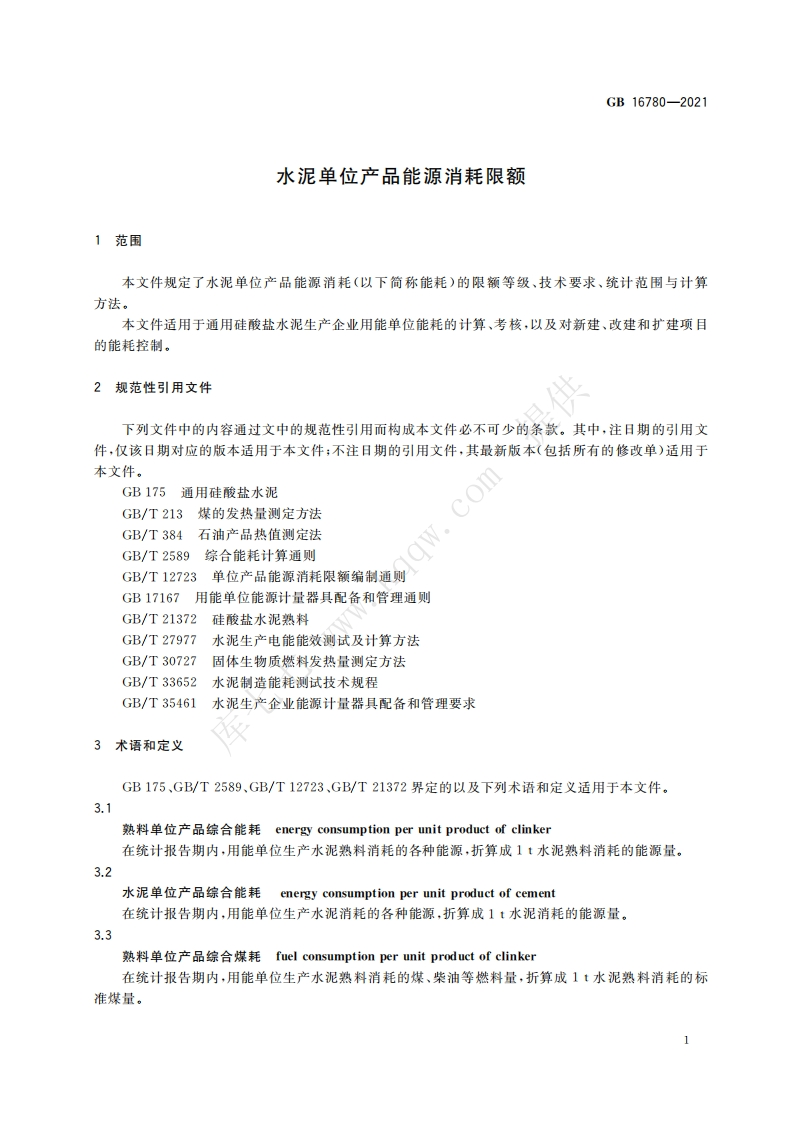 水泥单位产品能源消耗限额Thenormofenergyconsumptionperunitproductofcement_水泥单位产品能源消耗限额Thenormofenergyconsumptionperunitproductofcement348072@abc7天前发布关注私信0.41MB7页030水泥单位产品能源消耗限额Thenormofenergyconsumptionperunitproductofcement_水泥单位产品能源消耗限额Thenormofenergyconsumptionperunitproductofcement此内容为付费资源,请付费后查看¥23¥36黄金会员免费钻石会员免费立即购买您当前未登录!建议登陆后购买,可保存购买订单付费资源 第1页 / 共7页 第2页 / 共7页 第3页 / 共7页 第4页 / 共7页 第5页 / 共7页 试读已结束,还剩2页,您可下载完整版后进行离线阅读 THE END标准规范 文本预览 1CS27.010CCS F 01B中华人民共和国国家标准GB16780-2021代替GB16780一2012水泥单位产品能源消耗限额The norm of energy consumption per unit product of cement2021-10-11发布2022-11-01实施国家市场监督管理总局发布国家标准化管理委员会 查看更多 收起部分 喜欢就支持一下吧收藏