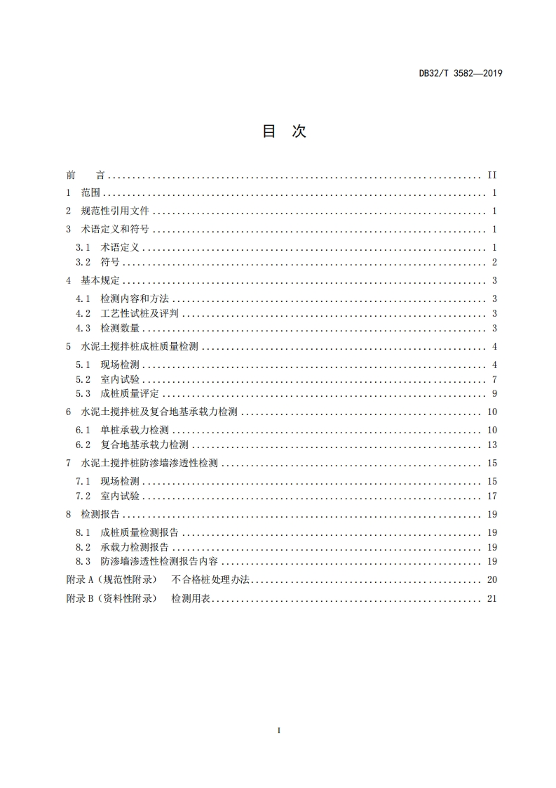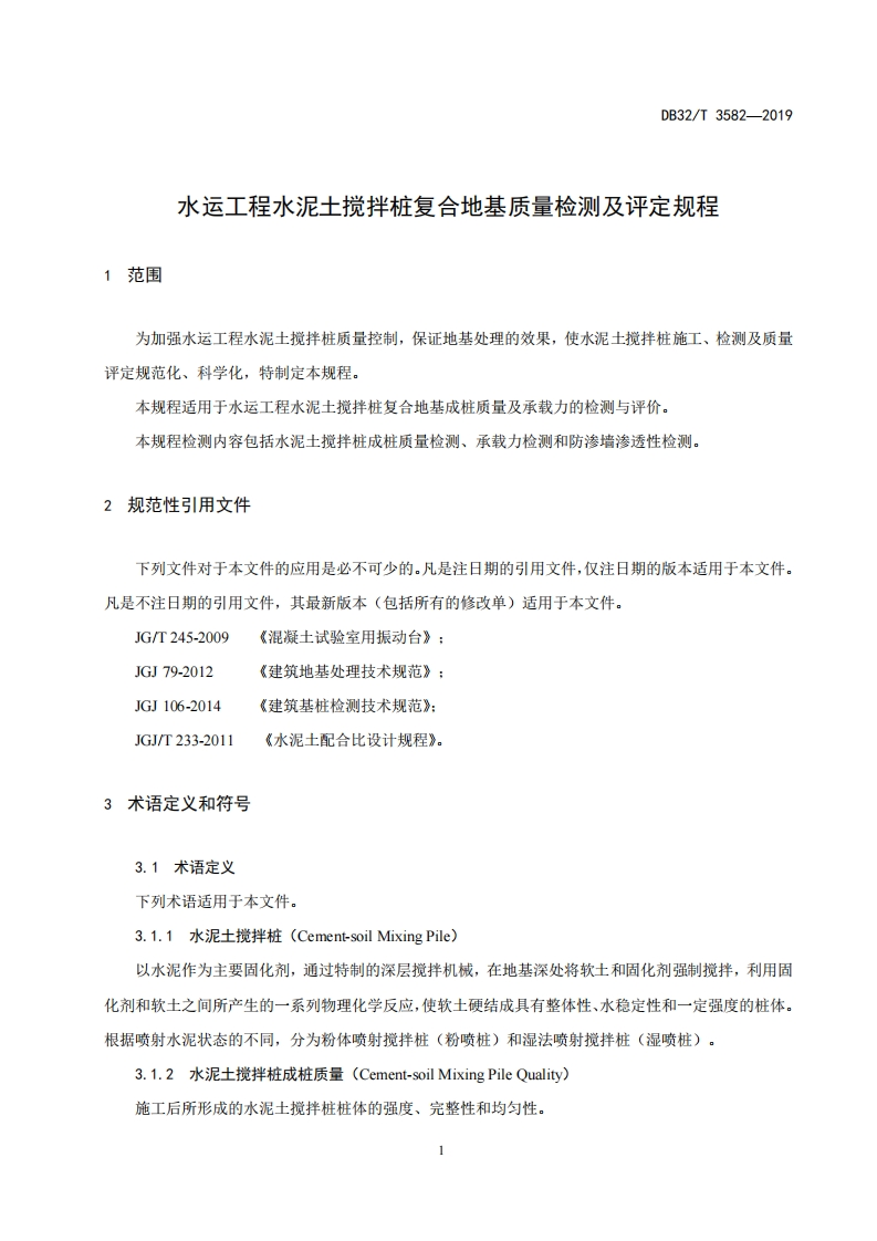 1Cs91.010.01P09备案号:DB32江苏省地方标准DB32/T3582-2019水运工程水泥土搅拌桩复合地基质量检测及评定规程Quality Inspection and Assessment Code for Cement-soil Mixing Pile CompositeFoundation of Waterway Engineering2019-04-08发布2019-04-30实施江苏省市场监督管理局发布