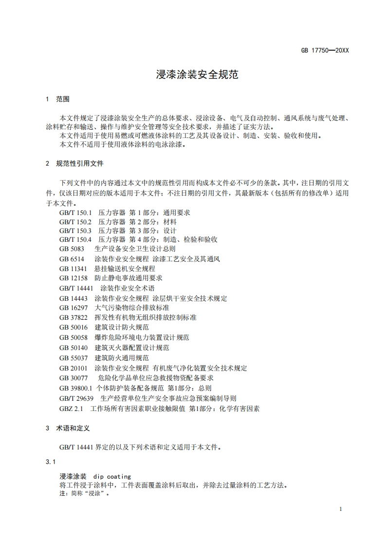 浸漆涂装安全规范Safetyspecificationfordippingcoating348072@abc6天前发布关注私信1.85MB47页038浸漆涂装安全规范Safetyspecificationfordippingcoating此内容为付费资源,请付费后查看¥23¥36黄金会员免费钻石会员免费立即购买您当前未登录!建议登陆后购买,可保存购买订单付费资源 第1页 / 共47页 第2页 / 共47页 第3页 / 共47页 第4页 / 共47页 第5页 / 共47页 试读已结束,还剩42页,您可下载完整版后进行离线阅读 THE END标准规范 文本预览 ICS13.100CCS C 72GB中华人民共和国国家标准GB17750-20XX代替GB17750一2012浸漆涂装安全规范Safety specification for dipping coating(征求意见稿)20××-××-××发布20××-××-××实施国家市场监督管理总局发布国家标准化管理委员会 查看更多 收起部分 喜欢就支持一下吧收藏