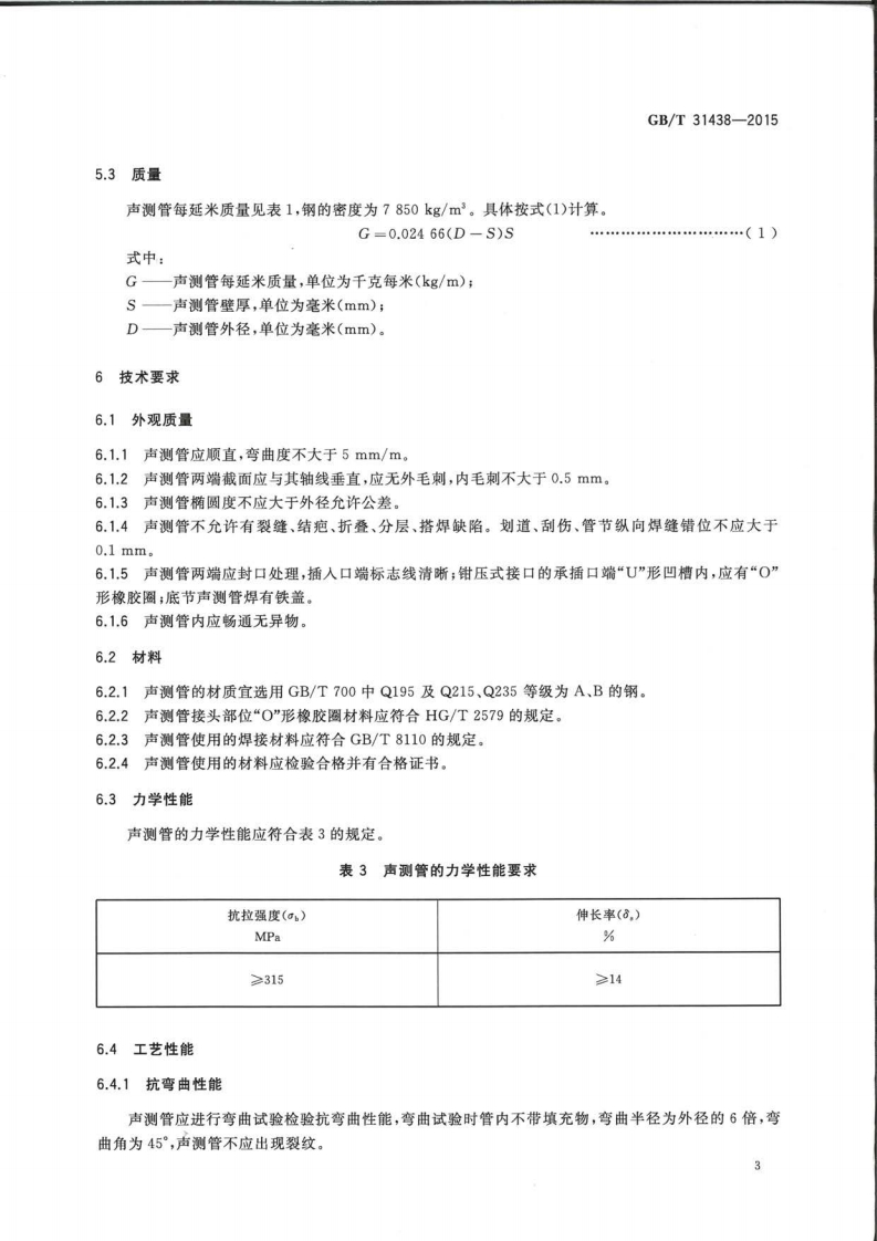 混凝土灌注桩用钢薄壁声测管Steelthin-walledsonic-testingtubesforconcreteboredpiles348072@abc6天前发布关注私信1.66MB16页039混凝土灌注桩用钢薄壁声测管Steelthin-walledsonic-testingtubesforconcreteboredpiles此内容为付费资源,请付费后查看¥23¥36黄金会员免费钻石会员免费立即购买您当前未登录!建议登陆后购买,可保存购买订单付费资源 第1页 / 共16页 第2页 / 共16页 第3页 / 共16页 第4页 / 共16页 第5页 / 共16页 试读已结束,还剩11页,您可下载完整版后进行离线阅读 THE END标准规范 文本预览 ICs93.040P28B中华人民共和国国家标准GB/T31438-2015混凝土灌注桩用钢薄壁声测管Steel thin-walled sonic-testing tubes for concrete bored piles2015-05-15发布2015-08-01实施中华人民共和国国家质量监督检验检疫总局中国国家标准化管理委员会发布 查看更多 收起部分 喜欢就支持一下吧收藏