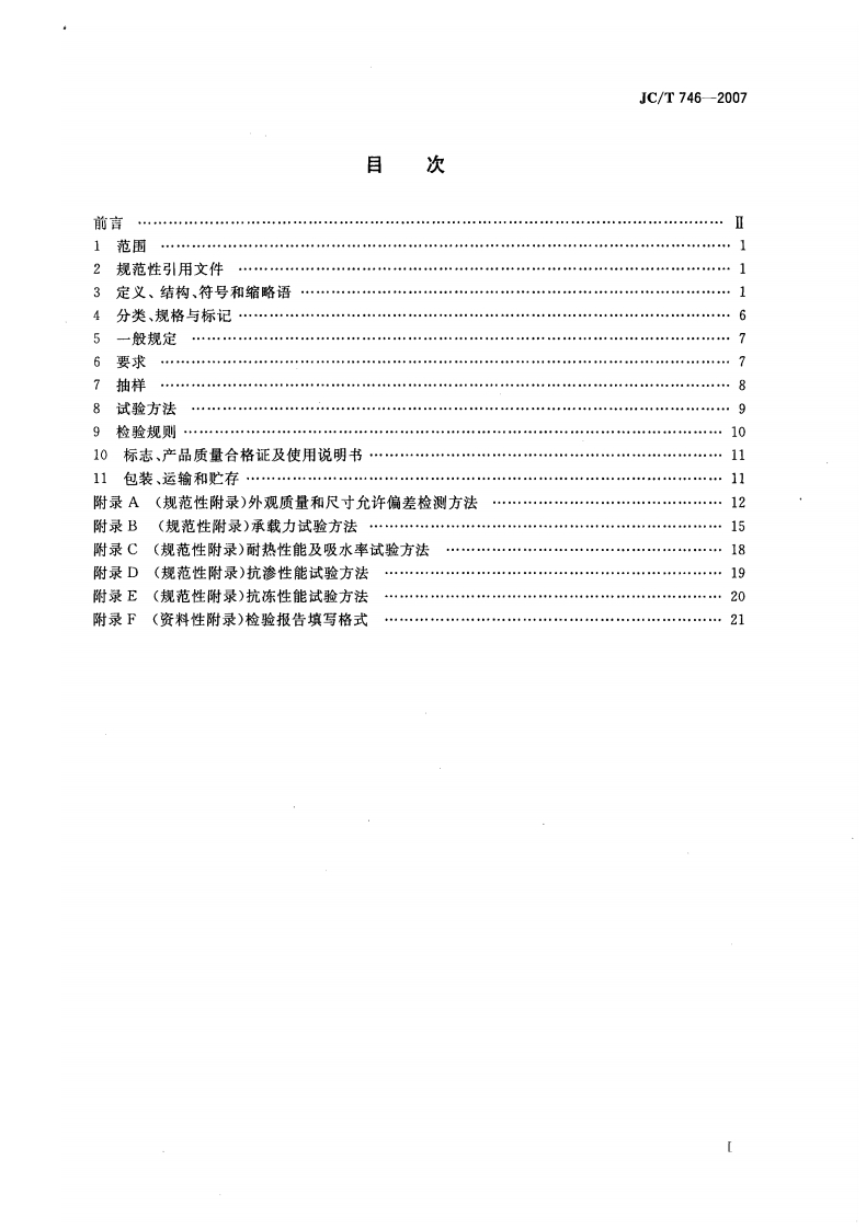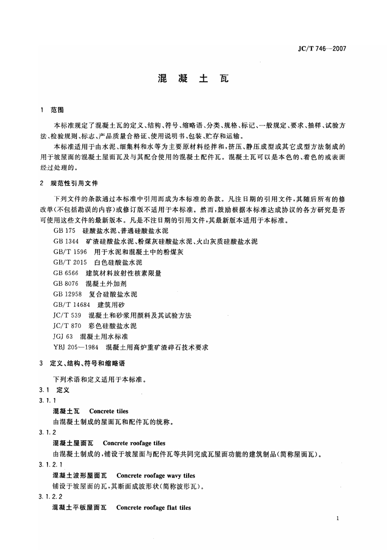 混凝土瓦Concretetiles_1348072@abc6天前发布关注私信0.94MB26页027混凝土瓦Concretetiles_1此内容为付费资源,请付费后查看¥23¥36黄金会员免费钻石会员免费立即购买您当前未登录!建议登陆后购买,可保存购买订单付费资源 第1页 / 共26页 第2页 / 共26页 第3页 / 共26页 第4页 / 共26页 第5页 / 共26页 试读已结束,还剩21页,您可下载完整版后进行离线阅读 THE END标准规范 文本预览 JC中华人民共和国建材行业标准JC/T746--2007代替JC746一1999混凝土瓦Concrete tiles2007-09-22发布2008-04-01实施中华人民共和国国家发展和改革委员会发布 查看更多 收起部分 喜欢就支持一下吧收藏