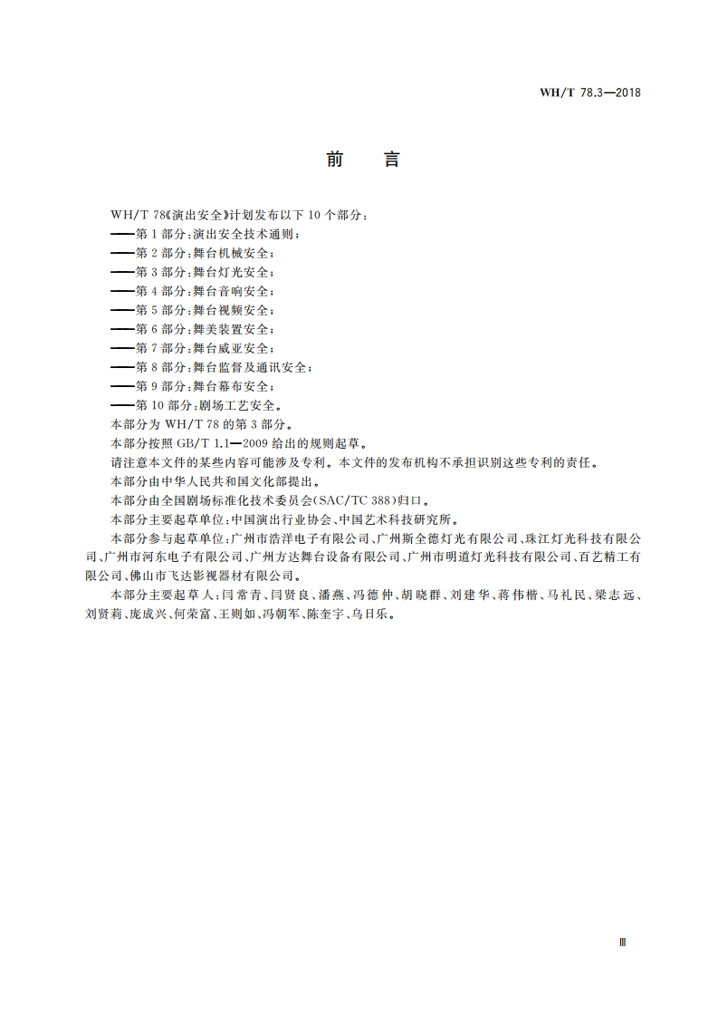 演出安全第3部分_舞台灯光安全PerformancesafetyPart3_Stagelightingsafety348072@abc6天前发布关注私信1.24MB19页038演出安全第3部分_舞台灯光安全PerformancesafetyPart3_Stagelightingsafety此内容为付费资源,请付费后查看¥23¥36黄金会员免费钻石会员免费立即购买您当前未登录!建议登陆后购买,可保存购买订单付费资源 第1页 / 共19页 第2页 / 共19页 第3页 / 共19页 第4页 / 共19页 第5页 / 共19页 试读已结束,还剩14页,您可下载完整版后进行离线阅读 THE END标准规范 文本预览 ICS13.100Y09WH中华人民共和国文化行业标准WH/T78.3-2018演出安全第3部分:舞台灯光安全Performance safety-Part 3:Stage lighting safety2018-01-08发布2018-07-01实施中华人民共和国文化部发布 查看更多 收起部分 喜欢就支持一下吧收藏