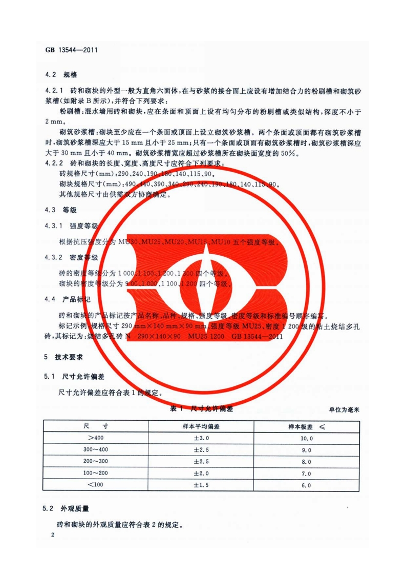 烧结多孔砖和多孔砌块Firedperforatedbrickandblock348072@abc5天前发布关注私信1.65MB14页045烧结多孔砖和多孔砌块Firedperforatedbrickandblock此内容为付费资源,请付费后查看¥23¥36黄金会员免费钻石会员免费立即购买您当前未登录!建议登陆后购买,可保存购买订单付费资源 第1页 / 共14页 第2页 / 共14页 第3页 / 共14页 第4页 / 共14页 第5页 / 共14页 试读已结束,还剩9页,您可下载完整版后进行离线阅读 THE END标准规范 文本预览 1Cs91.100.30Q1511039中华人民共和国国家标准GB13544-2011代替GB13544一2000烧结多孔砖和多孔砌块Fired perforated brick and block2011-06-16发布2012-04-01实施中华人民共和国国家质量监督检验检疫总局中国国家标准化管理委员会发布 查看更多 收起部分 喜欢就支持一下吧收藏