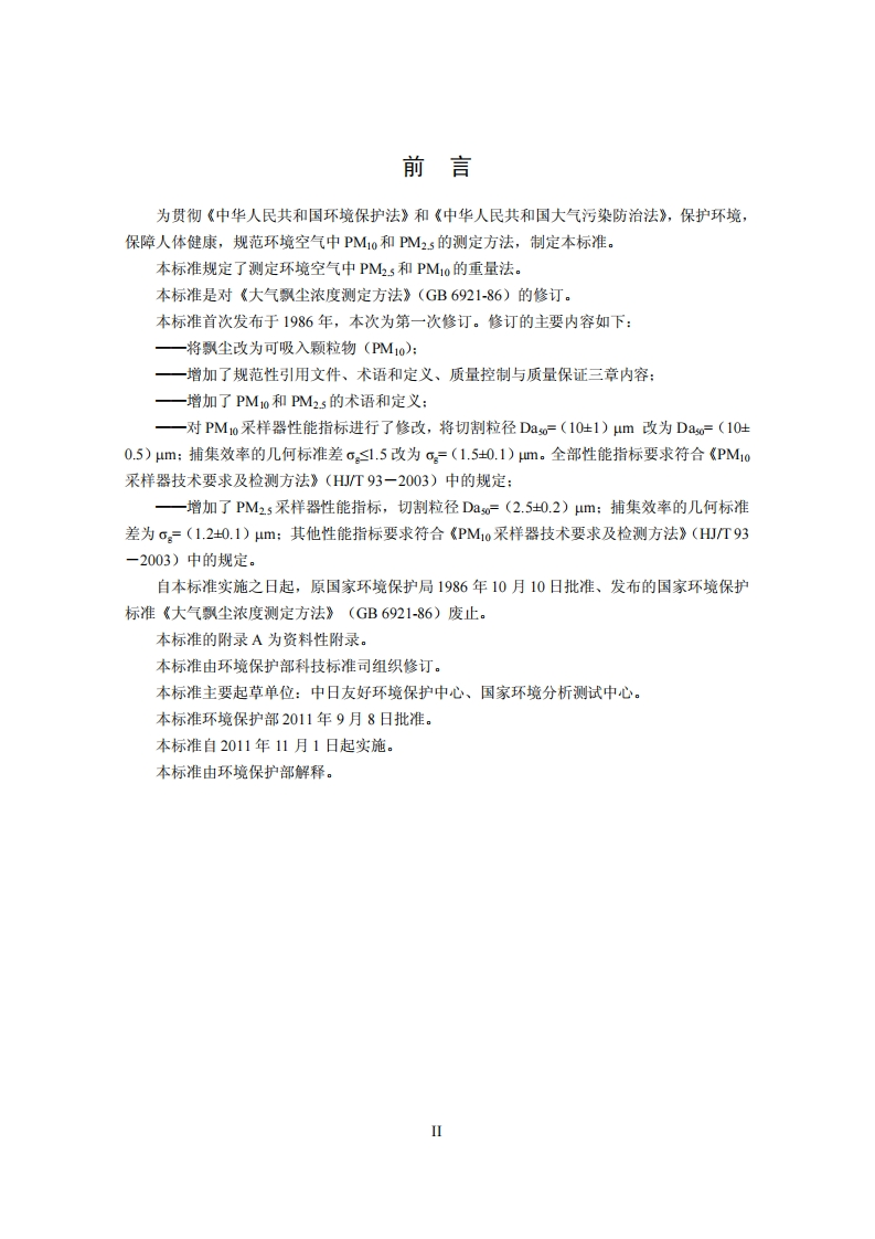 环境空气PM和PMs的测定重量法DeterminationofatmosphericarticlesPMoandPMsinambientairbygravimetricmethod本电子版为发布稿请以中国环境科学出版社出版的正式标准文本为准348072@abc4天前发布关注私信0.22MB8页043环境空气PM和PMs的测定重量法DeterminationofatmosphericarticlesPMoandPMsinambientairbygravimetricmethod本电子版为发布稿请以中国环境科学出版社出版的正式标准文本为准此内容为付费资源,请付费后查看¥23¥36黄金会员免费钻石会员免费立即购买您当前未登录!建议登陆后购买,可保存购买订单付费资源 第1页 / 共8页 第2页 / 共8页 第3页 / 共8页 第4页 / 共8页 第5页 / 共8页 试读已结束,还剩3页,您可下载完整版后进行离线阅读 THE END标准规范 文本预览 HJ中华人民共和国国家环境保护标准HⅢ618-2011代替GB6921-86环境空气PM1o和PM25的测定重量法Determination of atmospheric articles PM10 and PM25 in ambient air bygravimetric method本电子版为发布稿。请以中国环境科学出版社出版的正式标准文本为准。2011-09-08发布2011-11-01实施环境保护部发布 查看更多 收起部分 喜欢就支持一下吧收藏