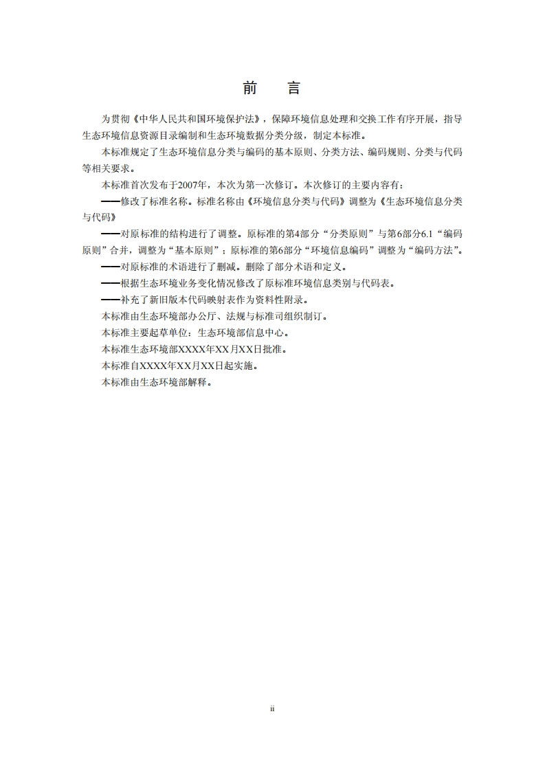 生态环境信息分类与代码Ecologicalandenvironmentalinformationclassificationandcode348072@abc3天前发布关注私信0.43MB62页029生态环境信息分类与代码Ecologicalandenvironmentalinformationclassificationandcode此内容为付费资源,请付费后查看¥23¥36黄金会员免费钻石会员免费立即购买您当前未登录!建议登陆后购买,可保存购买订单付费资源 第1页 / 共62页 第2页 / 共62页 第3页 / 共62页 第4页 / 共62页 第5页 / 共62页 试读已结束,还剩57页,您可下载完整版后进行离线阅读 THE END标准规范 文本预览 附件2HJ中华人民共和国国家生态环境标准HW口□口-20口□代替HW/T417一2007生态环境信息分类与代码Ecological and environmental information classification and code(征求意见稿)202口-口口-口口发布202口-口口-口口实施生态环境部发布 查看更多 收起部分 喜欢就支持一下吧收藏