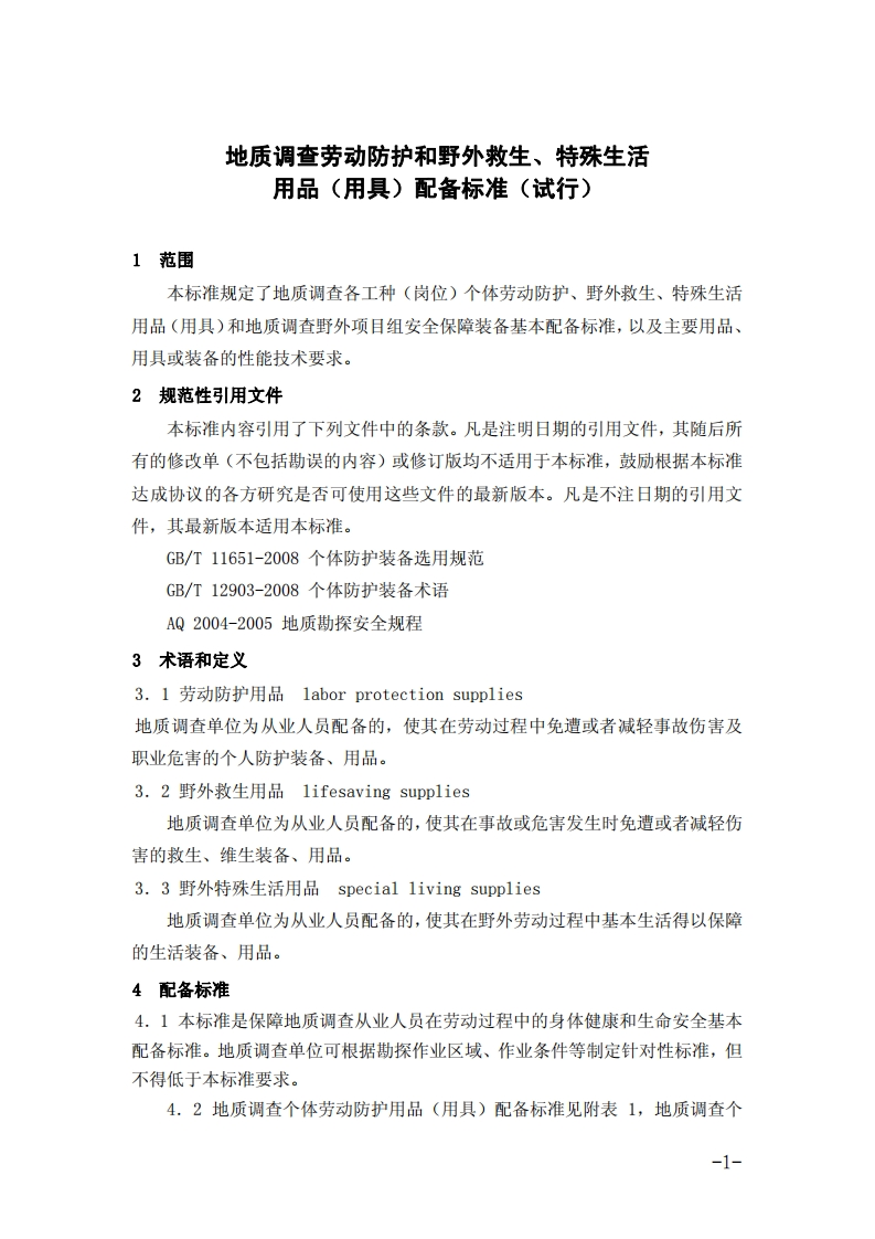生活用品(用具)配备标准(试行)348072@abc3天前发布关注私信0.32MB15页043生活用品(用具)配备标准(试行)此内容为付费资源,请付费后查看¥23¥36黄金会员免费钻石会员免费立即购买您当前未登录!建议登陆后购买,可保存购买订单付费资源 第1页 / 共15页 第2页 / 共15页 第3页 / 共15页 第4页 / 共15页 第5页 / 共15页 试读已结束,还剩10页,您可下载完整版后进行离线阅读 THE END标准规范 文本预览 地质调查劳动防护和野外救生、特殊生活用品(用具)配备标准(试行)2010年11月9日发布2010年11月9日实施中国地质调查局发布-1- 查看更多 收起部分 喜欢就支持一下吧收藏