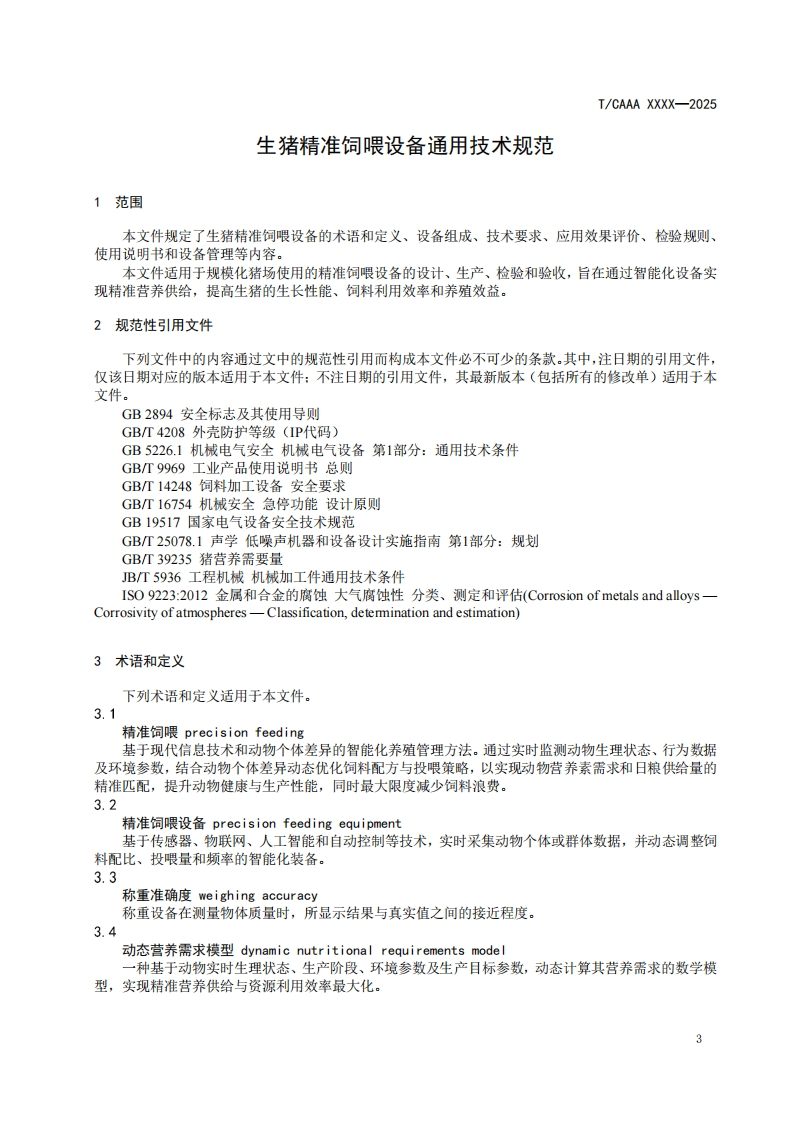 生猪精准饲喂设备通用技术规范Generaltechnicalspecificationforprecisionfeedingequipmentofswin348072@abc3天前发布关注私信0.46MB8页041生猪精准饲喂设备通用技术规范Generaltechnicalspecificationforprecisionfeedingequipmentofswin此内容为付费资源,请付费后查看¥23¥36黄金会员免费钻石会员免费立即购买您当前未登录!建议登陆后购买,可保存购买订单付费资源 第1页 / 共8页 第2页 / 共8页 第3页 / 共8页 第4页 / 共8页 第5页 / 共8页 试读已结束,还剩3页,您可下载完整版后进行离线阅读 THE END标准规范 文本预览 ICS点击此处添加ICS号CCS点击此处添加CCS号TCAAA中国畜牧业协会团体标准T/CAAA XXXX-2025生猪精准饲喂设备通用技术规范General technical specification for precision feeding equipment of swine(征求意见稿)2025-Xx-XX发布2025-Xx-XX实施中国畜牧业协会发布 查看更多 收起部分 喜欢就支持一下吧收藏