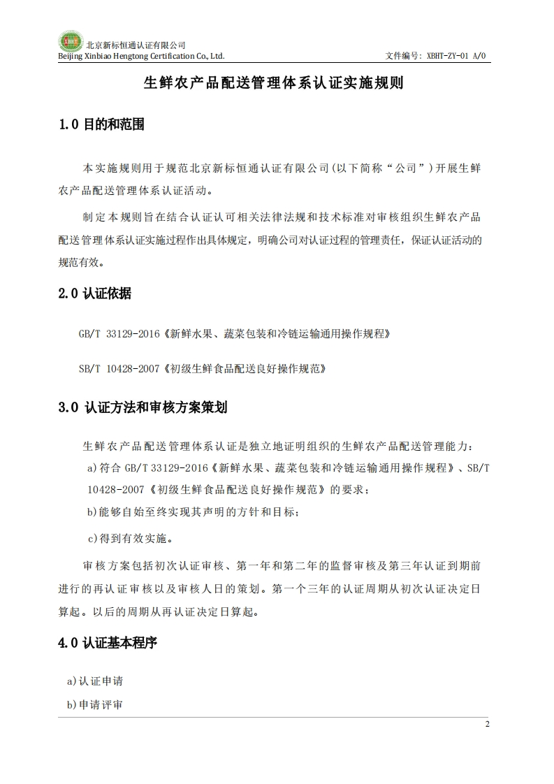 生鲜农产品配送管理体系认证实施规则XBHT-GZ-043版本号A_0348072@abc3天前发布关注私信0.87MB2页049生鲜农产品配送管理体系认证实施规则XBHT-GZ-043版本号A_0此内容为付费资源,请付费后查看¥23¥36黄金会员免费钻石会员免费立即购买您当前未登录!建议登陆后购买,可保存购买订单付费资源 第1页 / 共2页 第2页 / 共2页 已完成全部阅读,共2页 THE END标准规范 文本预览 北京新标恒通认证有限公司Beijing Xinbiao Hengtong Certification Co.,Ltd.生鲜农产品配送管理体系认证实施规则XBHT-GZ-043版本号A02025年9月1日发布2025年9月1日实施北京新标恒通认证有限公司发布 查看更多 收起部分 喜欢就支持一下吧收藏