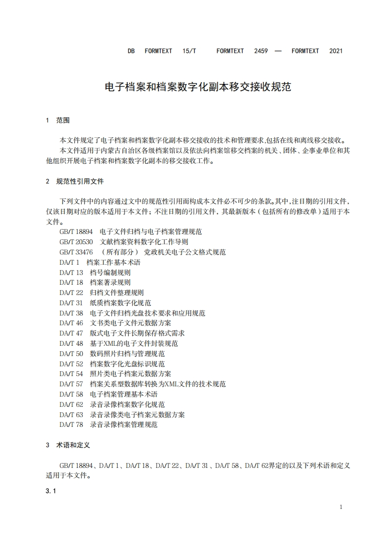 电子档案和档案数字化副本移交接收规范348072@abc3天前发布关注私信0.60MB27页044电子档案和档案数字化副本移交接收规范此内容为付费资源,请付费后查看¥23¥36黄金会员免费钻石会员免费立即购买您当前未登录!建议登陆后购买,可保存购买订单付费资源 第1页 / 共27页 第2页 / 共27页 第3页 / 共27页 第4页 / 共27页 第5页 / 共27页 试读已结束,还剩22页,您可下载完整版后进行离线阅读 THE END标准规范 文本预览 ICS01.040.01CCS A140B15内蒙古自治区地方标准DB15/T2459-2021电子档案和档案数字化副本移交接收规范Specification for transfer and acceptance of electronic records anddigital copy of ar chives2021-12-10发布2022-01-10实施内蒙古自治区市场监督管理局发布 查看更多 收起部分 喜欢就支持一下吧收藏
