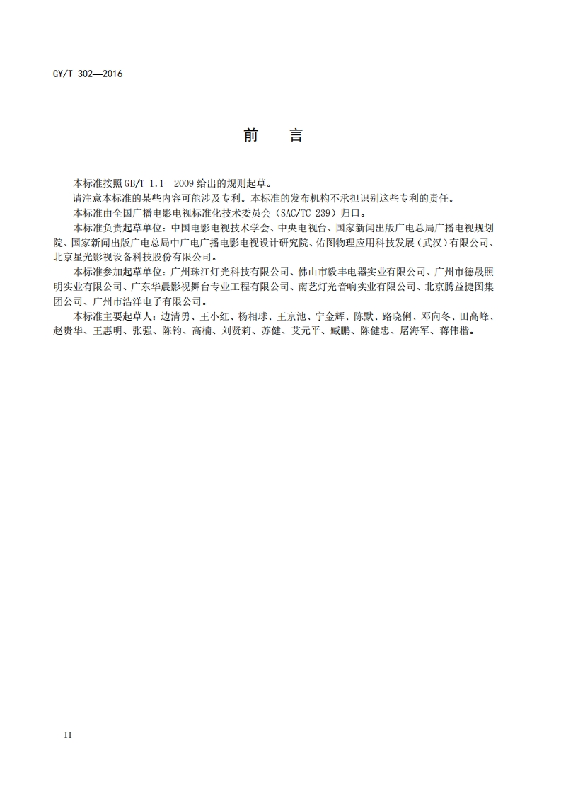 电影电视用白光LED灯具技术要求和测量方法TechnicalrequirementsandmeasurementmethodsofwhitelightLEDluminairesforfilmandtelevision348072@abc3天前发布关注私信0.44MB13页022电影电视用白光LED灯具技术要求和测量方法TechnicalrequirementsandmeasurementmethodsofwhitelightLEDluminairesforfilmandtelevision此内容为付费资源,请付费后查看¥23¥36黄金会员免费钻石会员免费立即购买您当前未登录!建议登陆后购买,可保存购买订单付费资源 第1页 / 共13页 第2页 / 共13页 第3页 / 共13页 第4页 / 共13页 第5页 / 共13页 试读已结束,还剩8页,您可下载完整版后进行离线阅读 THE END标准规范 文本预览 Y中华人民共和国广播电影电视行业标准GYT302—2016电影电视用白光LED灯具技术要求和测量方法Technical requirements and measurement methods of white lightLED luminaires for film and television2016-07-18发布2016-07-18实施国家新闻出版广电总局发布 查看更多 收起部分 喜欢就支持一下吧收藏
