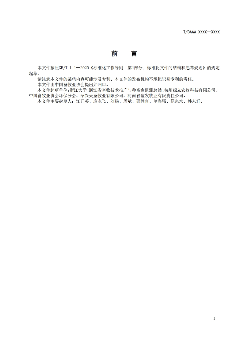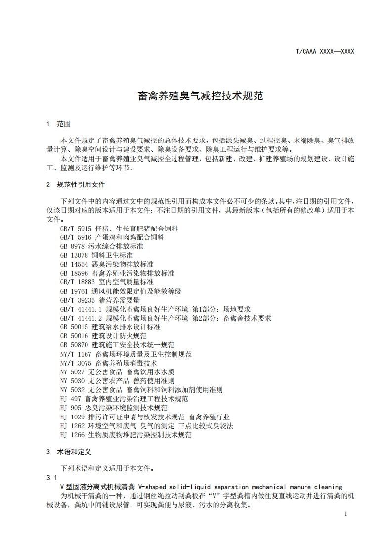 ICS65.040.10CCS B 43Q/LB.☐XXX-XXXT/团体标准T/CAAA XXXX-XXXX畜禽养殖臭气减控技术规范Technical Specification for Odor Reduction and Control in Livestock and PoultryFarming(征求意见稿)在提交反馈意见时,请将您知道的相关专利连同支持性文件一并附上。XXXX-XX-XX发布XXXX-XX-XX实施中国畜牧业协会发布