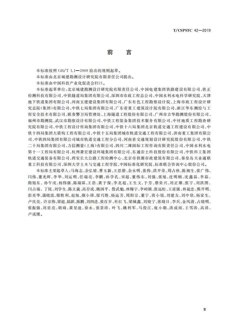 盾构隧道施工测量技术规范Technicalspecificationforconstructionsurveyofshieldtunnel348072@abc3天前发布关注私信1.86MB27页048盾构隧道施工测量技术规范Technicalspecificationforconstructionsurveyofshieldtunnel此内容为付费资源,请付费后查看¥23¥36黄金会员免费钻石会员免费立即购买您当前未登录!建议登陆后购买,可保存购买订单付费资源 第1页 / 共27页 第2页 / 共27页 第3页 / 共27页 第4页 / 共27页 第5页 / 共27页 试读已结束,还剩22页,您可下载完整版后进行离线阅读 THE END标准规范 文本预览 1CS93.060P11CSPSTC团体标准T/CSPSTC 42-2019盾构隧道施工测量技术规范Technical specification for construction survey of shield tunnel2019-12-26发布2020-04-01实施中国科技产业化促进会发布 查看更多 收起部分 喜欢就支持一下吧收藏