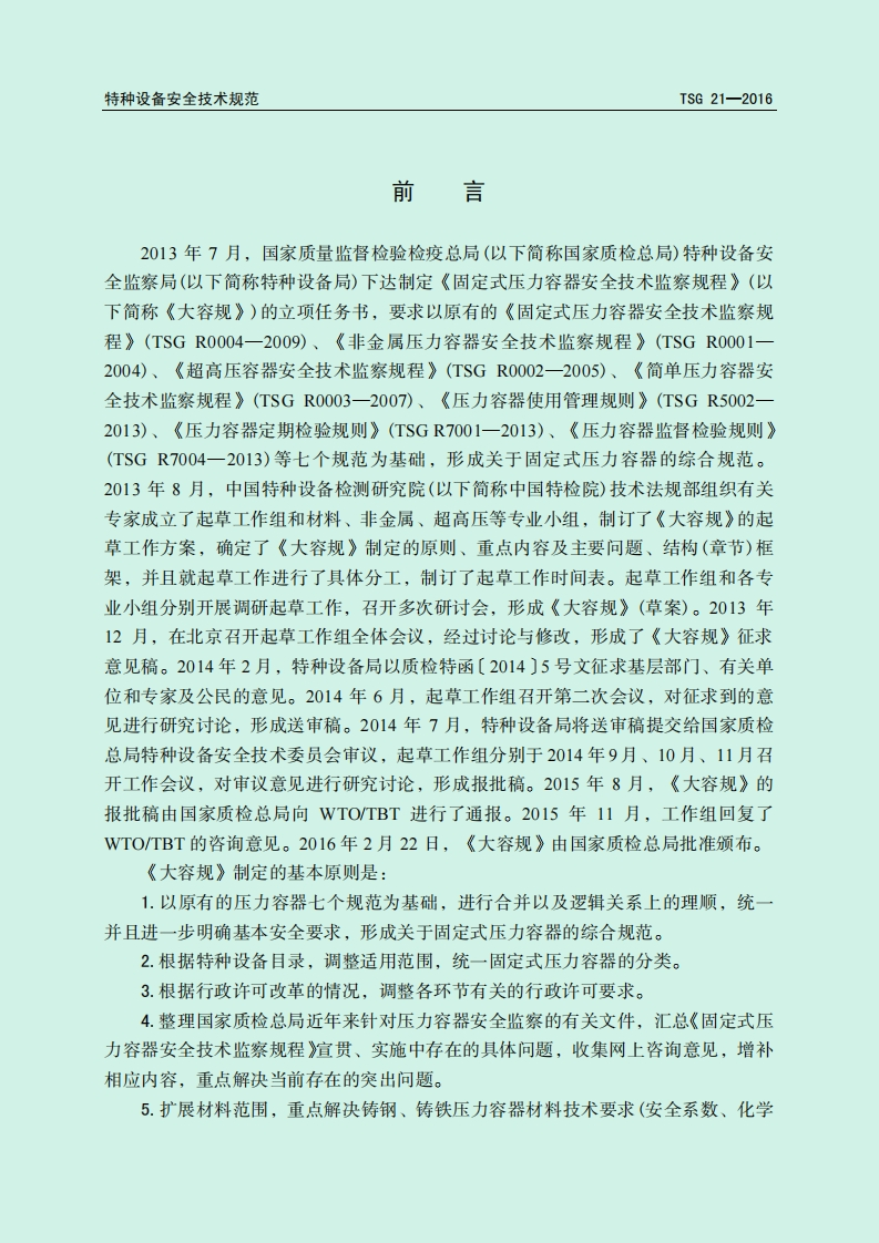 TSG-21-2016-固定式压力容器安全技术监察规程348072@abc4个月前发布关注私信1.10MB171页032TSG-21-2016-固定式压力容器安全技术监察规程此内容为付费资源,请付费后查看¥13¥23黄金会员免费钻石会员免费立即购买您当前未登录!建议登陆后购买,可保存购买订单付费资源 第1页 / 共171页 第2页 / 共171页 试读已结束,还剩169页,您可下载完整版后进行离线阅读 THE END标准规范 文本预览 TSG特种设备安全技术规范TSG21-2016固定式压力容器安全技术监察规程Supervision Regulation on Safety Technology forStationary Pressure Vessel中华人民共和国国家质量监督检验检疫总局颁布2016年2月22日 查看更多 收起部分 喜欢就支持一下吧收藏