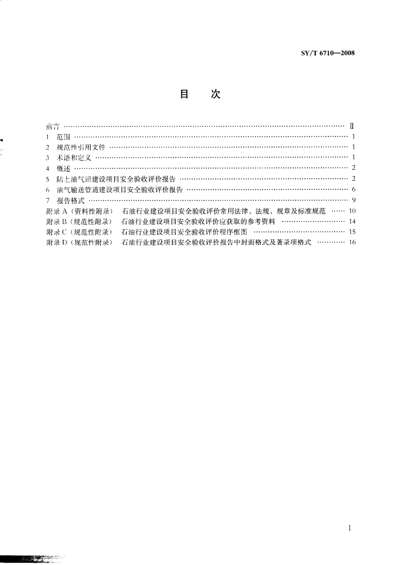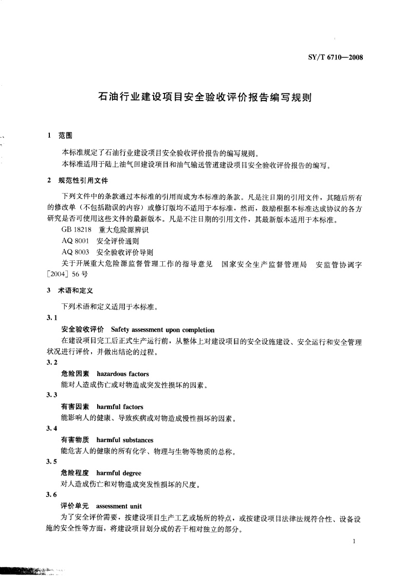 石油行业建设项目安全验收评价报告编写规则Specificationoncompilingsafetyassessmentuponcompletionofpetroleumengineeringproject348072@abc3天前发布关注私信0.84MB22页026石油行业建设项目安全验收评价报告编写规则Specificationoncompilingsafetyassessmentuponcompletionofpetroleumengineeringproject此内容为付费资源,请付费后查看¥23¥36黄金会员免费钻石会员免费立即购买您当前未登录!建议登陆后购买,可保存购买订单付费资源 第1页 / 共22页 第2页 / 共22页 第3页 / 共22页 第4页 / 共22页 第5页 / 共22页 试读已结束,还剩17页,您可下载完整版后进行离线阅读 THE END标准规范 文本预览 IS13.100E09备案号:24392一2008SY中华人民共和国石油天然气行业标准SY/T6710-2008石油行业建设项目安全验收评价报告编写规则Specification on compiling safety assessment uponcompletion of petroleum engineering project2008一06一16发布2008一12一01实施国家发展和改革委员会发布之 查看更多 收起部分 喜欢就支持一下吧收藏