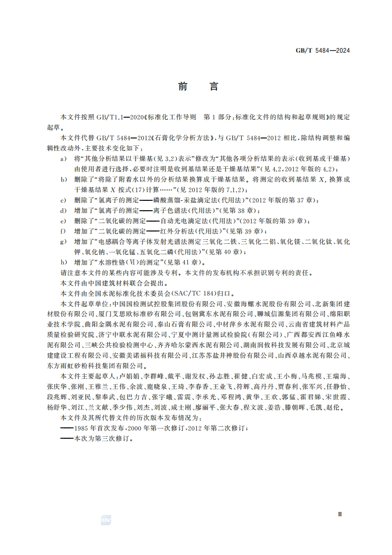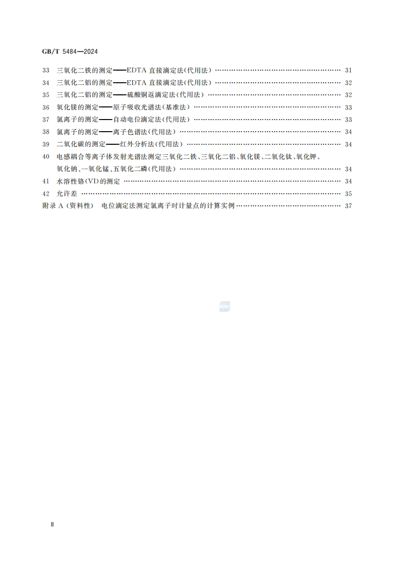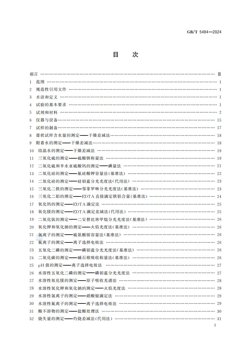 石膏化学分析方法Vethodsforchemicalanalysisofgypsum_石膏化学分析方法Methodsforchemicalanalysisofgypsum348072@abc3天前发布关注私信0.74MB47页036石膏化学分析方法Vethodsforchemicalanalysisofgypsum_石膏化学分析方法Methodsforchemicalanalysisofgypsum此内容为付费资源,请付费后查看¥23¥36黄金会员免费钻石会员免费立即购买您当前未登录!建议登陆后购买,可保存购买订单付费资源 第1页 / 共47页 第2页 / 共47页 第3页 / 共47页 第4页 / 共47页 第5页 / 共47页 试读已结束,还剩42页,您可下载完整版后进行离线阅读 THE END标准规范 文本预览 1Cs91.100.10CCS Q 11中华人民共和国国家标准GB/T5484-2024代替GB/T5484一2012石膏化学分析方法Methods for chemical analysis of gypsum2024-04-25发布2024-11-01实施国家市场监督管理兽局发布国家标准化管理委员会 查看更多 收起部分 喜欢就支持一下吧收藏