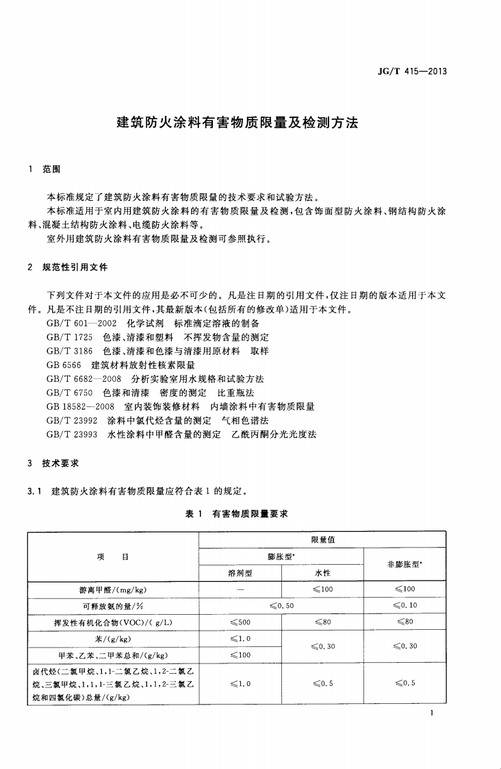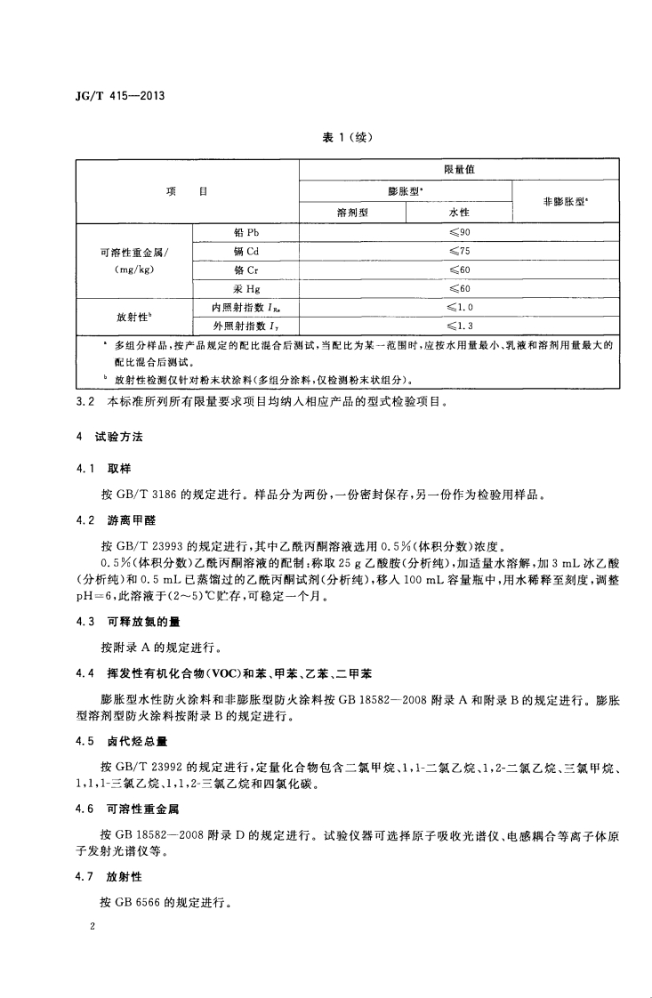 筑防火涂料有害物质限量及检测方法imitandtestmethodofharmfulsubstancesinfire-retardantcoating348072@abc3天前发布关注私信0.37MB11页046筑防火涂料有害物质限量及检测方法imitandtestmethodofharmfulsubstancesinfire-retardantcoating此内容为付费资源,请付费后查看¥23¥36黄金会员免费钻石会员免费立即购买您当前未登录!建议登陆后购买,可保存购买订单付费资源 第1页 / 共11页 第2页 / 共11页 第3页 / 共11页 第4页 / 共11页 第5页 / 共11页 试读已结束,还剩6页,您可下载完整版后进行离线阅读 THE END标准规范 文本预览 1CS87.040025G中华人民共和国建筑工业行业标准JG/T415-2013建筑防火涂料有害物质限量及检测方法Limit and test method of harmful substances in fire-retardant coating2013-09-29发布2014-02-01实施中华人民共和国住房和城乡建设部发布 查看更多 收起部分 喜欢就支持一下吧收藏