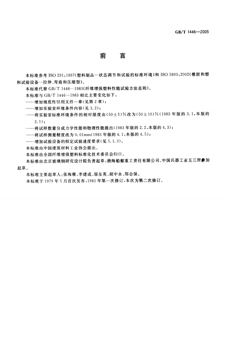 纤维增强塑料性能试验方法总则Fiber-reinforcedplasticscomposites-Thegeneralsfordeterminationofproperties348072@abc3天前发布关注私信0.19MB5页050纤维增强塑料性能试验方法总则Fiber-reinforcedplasticscomposites-Thegeneralsfordeterminationofproperties此内容为付费资源,请付费后查看¥23¥36黄金会员免费钻石会员免费立即购买您当前未登录!建议登陆后购买,可保存购买订单付费资源 第1页 / 共5页 第2页 / 共5页 第3页 / 共5页 第4页 / 共5页 第5页 / 共5页 已完成全部阅读,共5页 THE END标准规范 文本预览 ICs83.120023中华人民共和国国家标准GB/T1446-2005代替GB/T1446-1983纤维增强塑料性能试验方法总则Fiber-reinforced plastics composites-The generalsfor determination of properties2005-05-18发布2005-12-01实施中华人民共和国国家质量监督检验检疫总局中国国家标准化管理委员会发布 查看更多 收起部分 喜欢就支持一下吧收藏