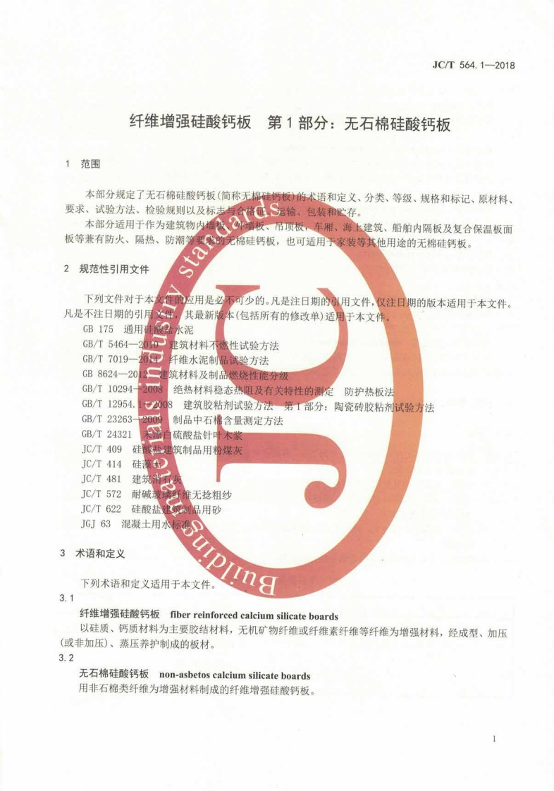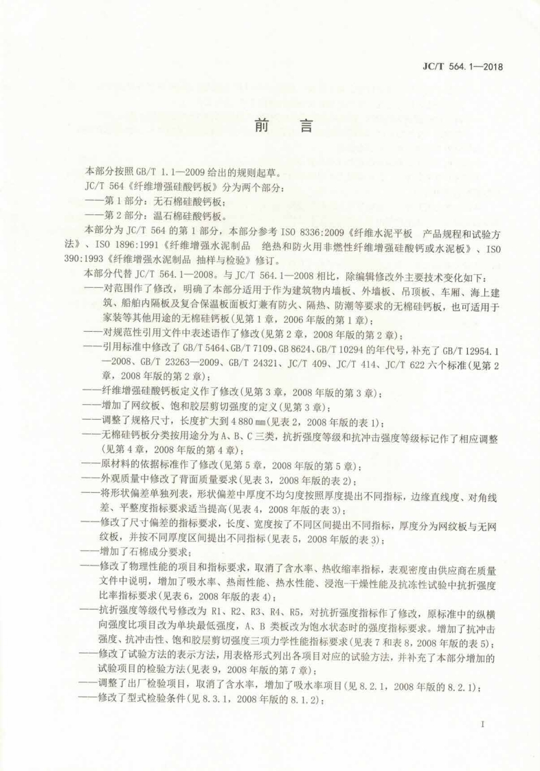 ICS91.100.40Q14备案号:63781-2018JC中华人民共和国建材行业标准JC/T564.1-2018代替JC/T564.1一2008纤维增强硅酸钙板第1部分:无石棉硅酸钙板Fiber reinforced calcium silicate boards-Part 1:Non-asbestos calcium silicate boards2018-04-30发布2018-09-01实施中华人民共和国工业和信息化部发布