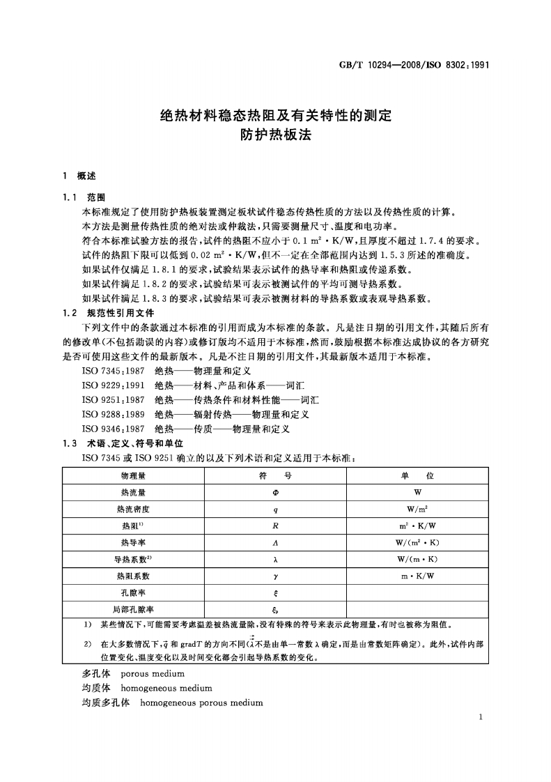 绝热材料稳态热阻及有关特性的测定防护热板法Thermalinsulation-Determinationofsteady-statethermalresistanceandrelatedpropertiesGuardedhotplateapparatus(ISO8302_1991IDT)