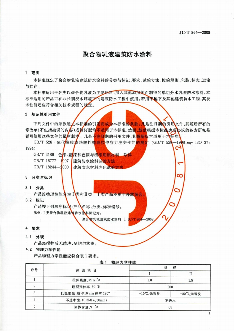 聚合物乳液建筑防水涂料Polymeremulsionarchitecturalwaterproofcoating348072@abc3天前发布关注私信1.79MB8页023聚合物乳液建筑防水涂料Polymeremulsionarchitecturalwaterproofcoating此内容为付费资源,请付费后查看¥23¥36黄金会员免费钻石会员免费立即购买您当前未登录!建议登陆后购买,可保存购买订单付费资源 第1页 / 共8页 第2页 / 共8页 第3页 / 共8页 第4页 / 共8页 第5页 / 共8页 试读已结束,还剩3页,您可下载完整版后进行离线阅读 THE END标准规范 文本预览 ICSQ备案号:JC中华人民共和国建材行业标准JC/T864-2008代替JC/T864-2000聚合物乳液建筑防水涂料Polymer emulsion architectural waterproof coating2008-06-16发布2008-12-01实施中华人民共和国国家发展和改革委员会发布 查看更多 收起部分 喜欢就支持一下吧收藏