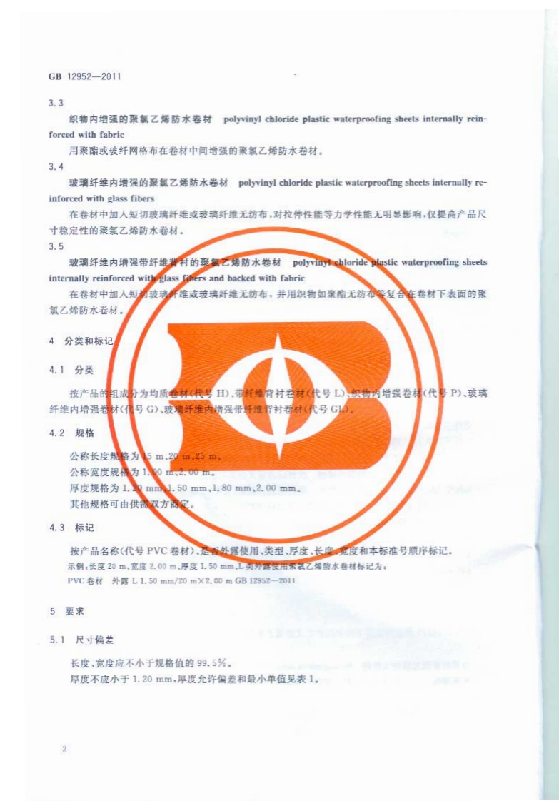 聚氯乙烯(PVC)防水卷材Polyvinylchlorideplastiesheetsforwaterproofing348072@abc3天前发布关注私信1.51MB21页048聚氯乙烯(PVC)防水卷材Polyvinylchlorideplastiesheetsforwaterproofing此内容为付费资源,请付费后查看¥23¥36黄金会员免费钻石会员免费立即购买您当前未登录!建议登陆后购买,可保存购买订单付费资源 第1页 / 共21页 第2页 / 共21页 第3页 / 共21页 第4页 / 共21页 第5页 / 共21页 试读已结束,还剩16页,您可下载完整版后进行离线阅读 THE END标准规范 文本预览 1CS91.120.30Q17GB中华人民共和国国家标准GB12952-2011代替GB12952一2003聚氯乙烯(PVC)防水卷材Polyvinyl chloride plastic sheets for waterproofing2011-12-30发布2012-12-01实施中华人民共和国国家质量监督检验检疫总局发布中国国家标准化管理委员会 查看更多 收起部分 喜欢就支持一下吧收藏