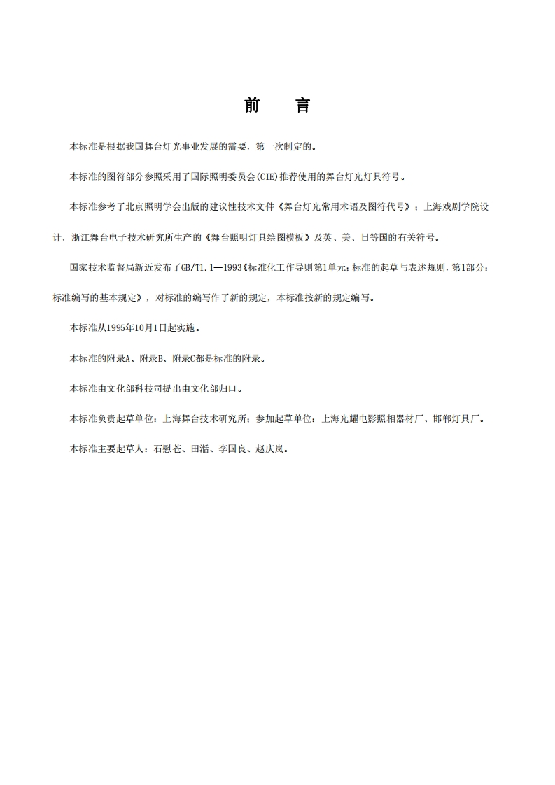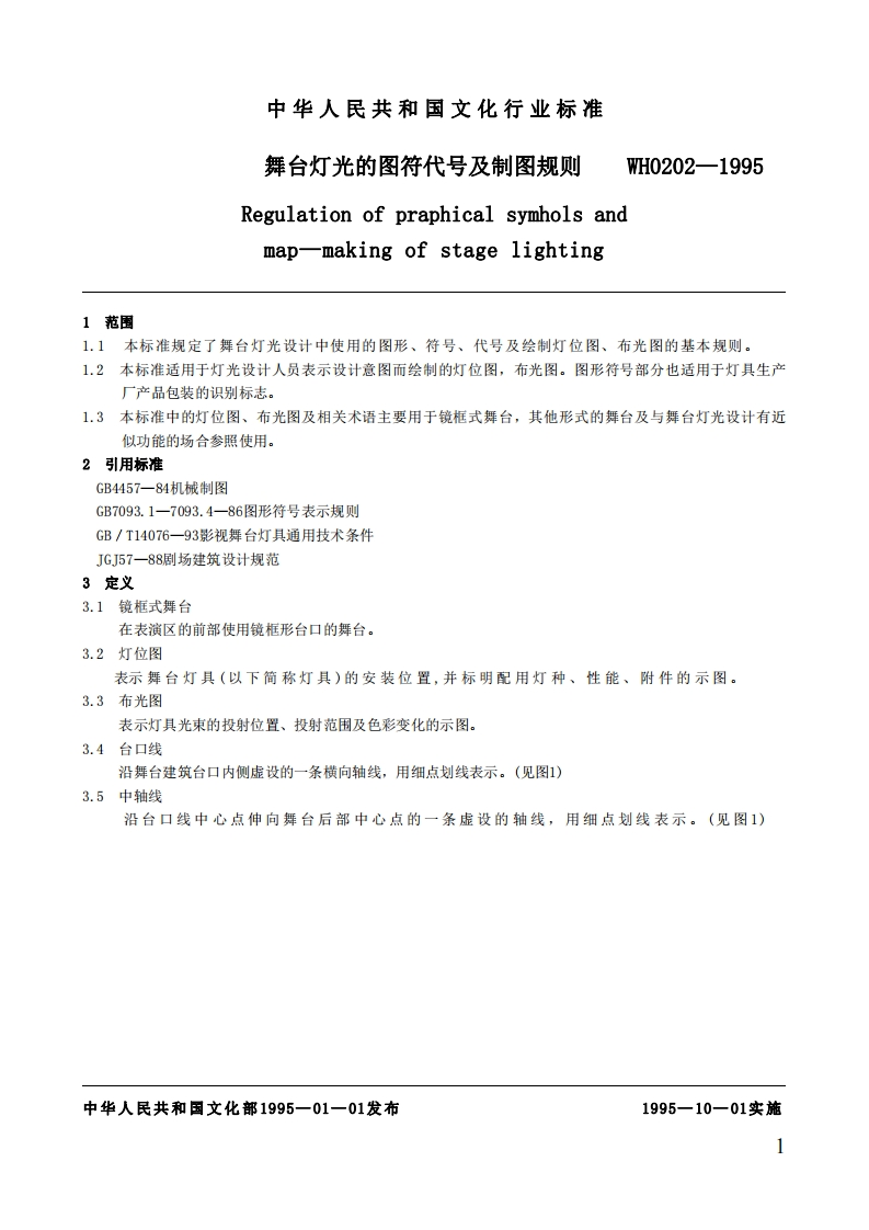 舞台灯光图符代号及制图规则RegulationofgraphicalsymbolsandmapmakingofstageLighting348072@abc3天前发布关注私信1.03MB21页034舞台灯光图符代号及制图规则RegulationofgraphicalsymbolsandmapmakingofstageLighting此内容为付费资源,请付费后查看¥23¥36黄金会员免费钻石会员免费立即购买您当前未登录!建议登陆后购买,可保存购买订单付费资源 第1页 / 共21页 第2页 / 共21页 第3页 / 共21页 第4页 / 共21页 第5页 / 共21页 试读已结束,还剩16页,您可下载完整版后进行离线阅读 THE END标准规范 文本预览 WH中华人民共和国文化行业标准WH0202一1995舞台灯光图符代号及制图规则Regulation of graphical symbols andmap-making of stage Lighting1995一01一01发布1995一10一01实施中华人民共和国文化部发布 查看更多 收起部分 喜欢就支持一下吧收藏