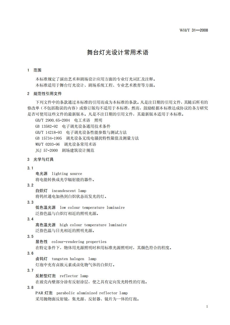 舞台灯光设计常用术语TerminologyofLighting348072@abc2天前发布关注私信0.41MB30页036舞台灯光设计常用术语TerminologyofLighting此内容为付费资源,请付费后查看¥23¥36黄金会员免费钻石会员免费立即购买您当前未登录!建议登陆后购买,可保存购买订单付费资源 第1页 / 共30页 第2页 / 共30页 第3页 / 共30页 第4页 / 共30页 第5页 / 共30页 试读已结束,还剩25页,您可下载完整版后进行离线阅读 THE END标准规范 文本预览 备案号:23534一2008中华人民共和国文化行业标准WH/T31-2008舞台灯光设计常用术语Terminology of Lighting2008-04-03发布2008-06-01实施中华人民共和国文化部发布 查看更多 收起部分 喜欢就支持一下吧收藏