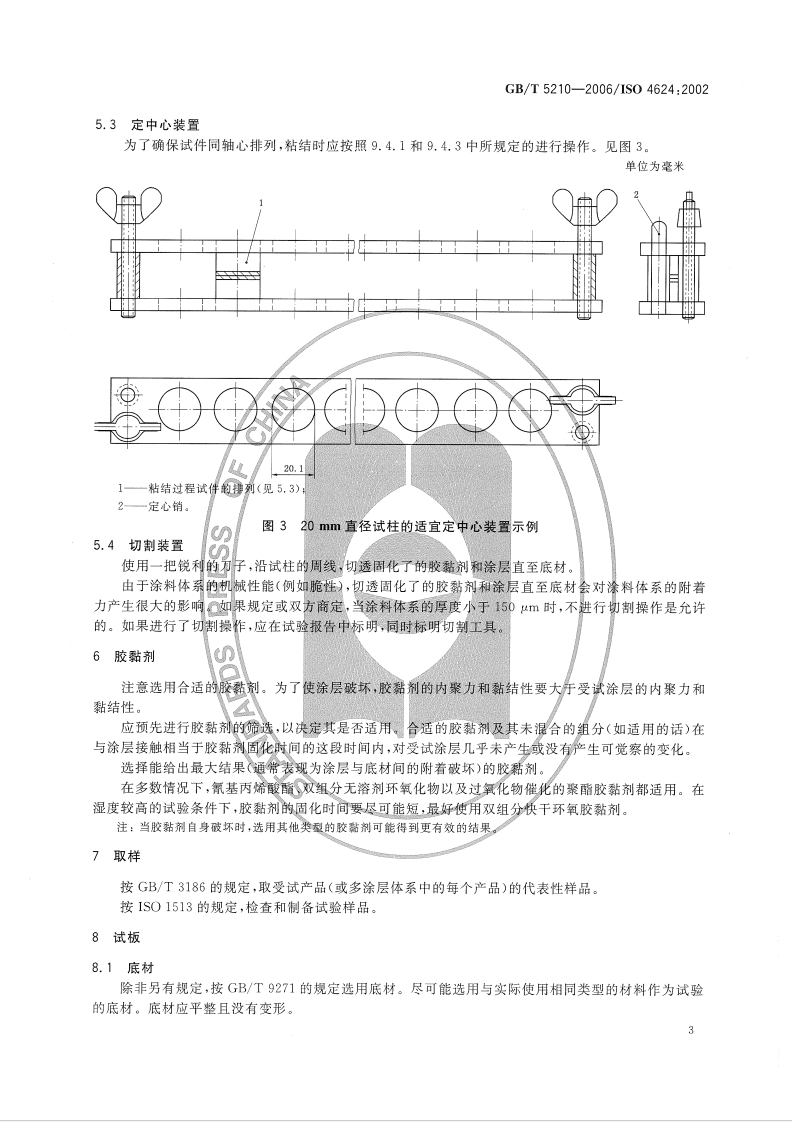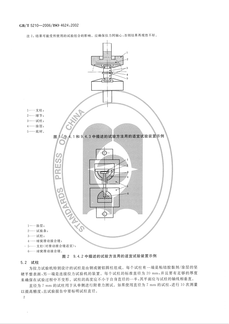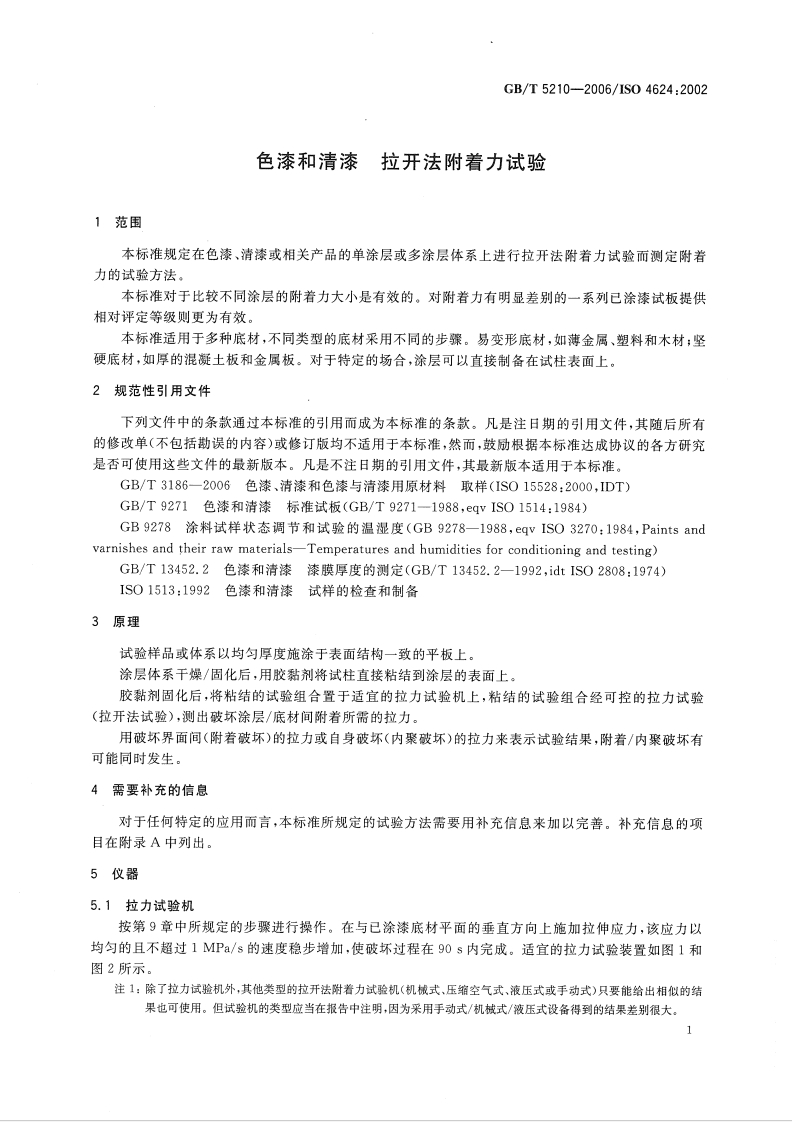 1CS87.040G51中华人民共和国国家标准GB/T5210-2006/IS04624:2002代替GB/T5210一1985色漆和清漆拉开法附着力试验Paints and varnishes-Pull-off test for adhesion(ISO4624:2002,IDT)2006-09-01发布2007-02-01实施中华人民共和国国家质量监督检验检疫总局数财中国国家标谁化管理委员会发布