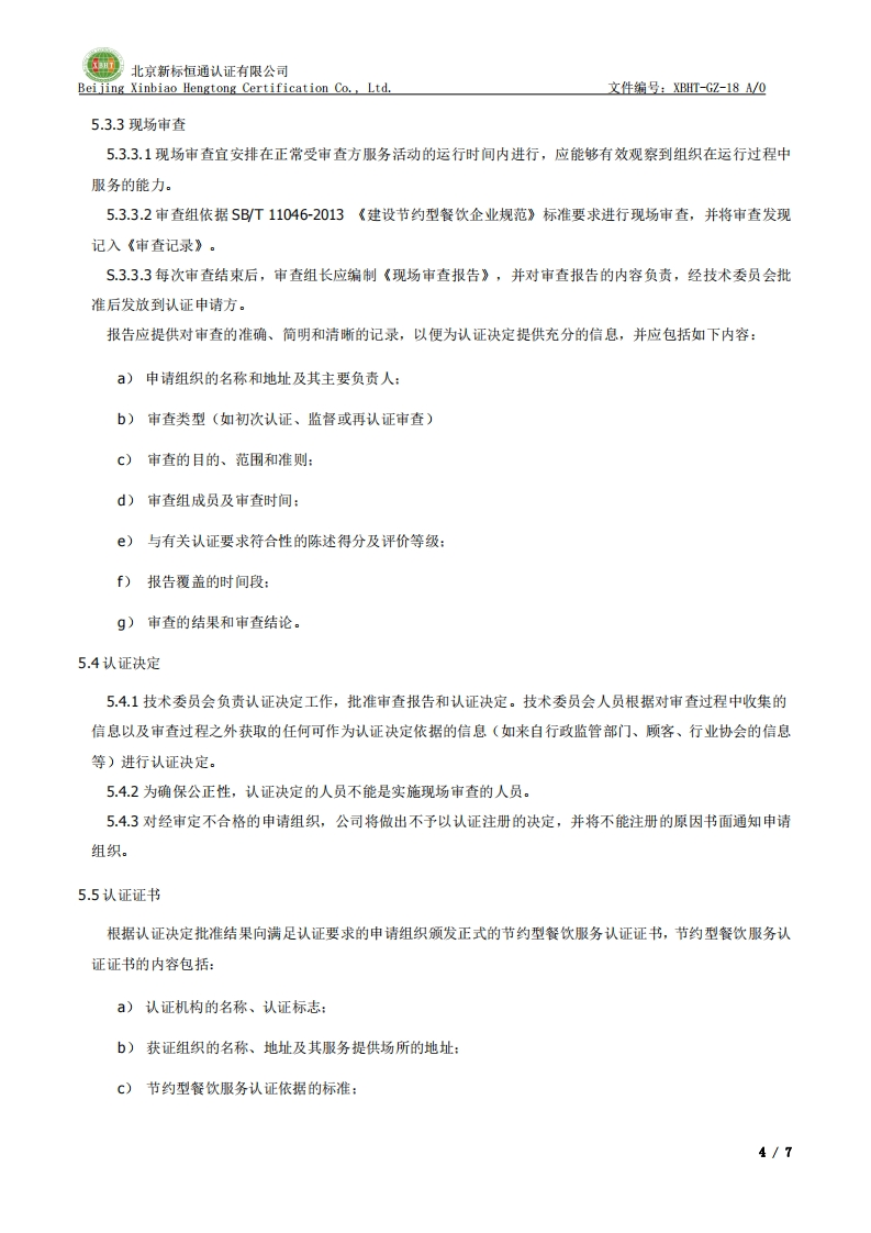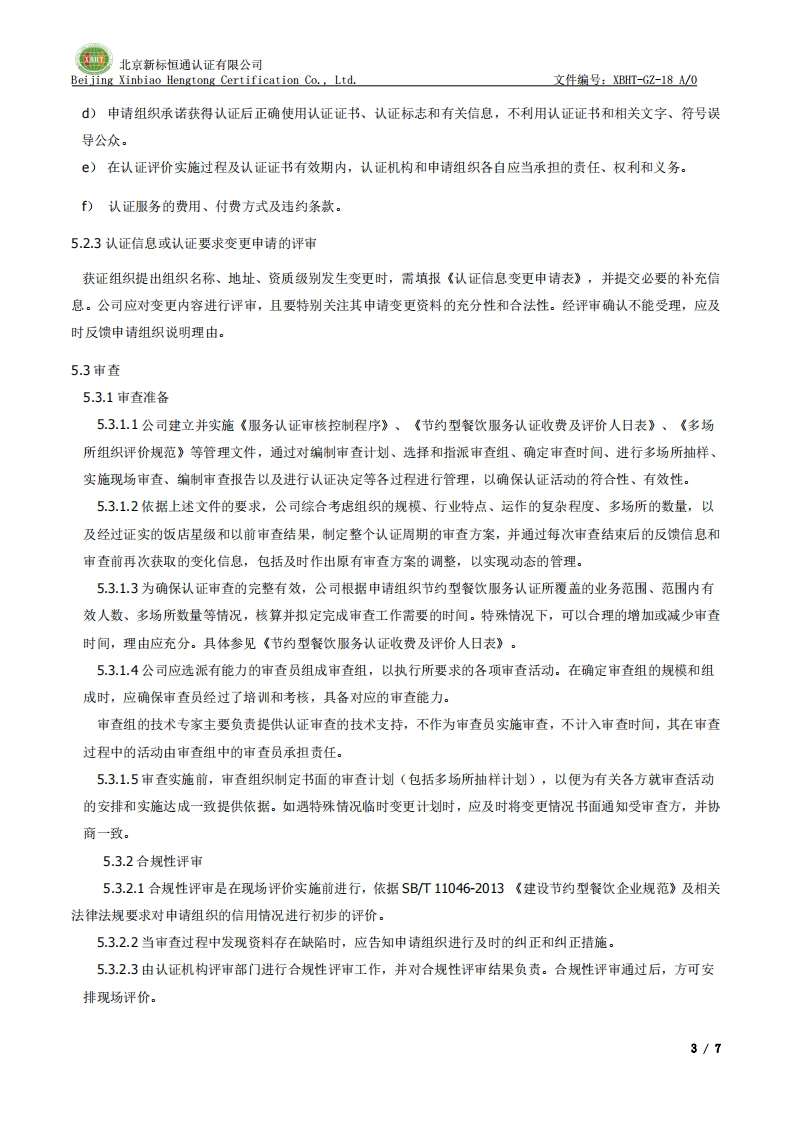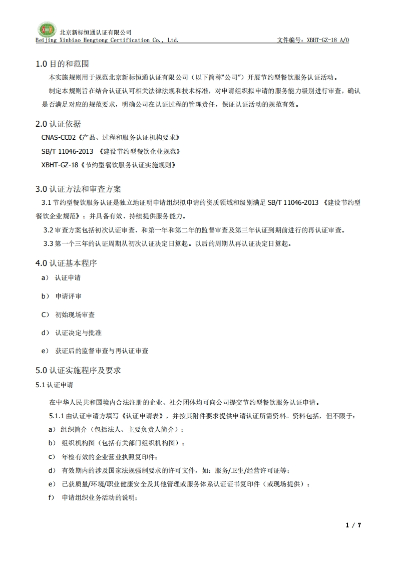 节约型餐饮服务认证实施规则XBHT-GZ-18A_0348072@abc2天前发布关注私信0.16MB8页040节约型餐饮服务认证实施规则XBHT-GZ-18A_0此内容为付费资源,请付费后查看¥23¥36黄金会员免费钻石会员免费立即购买您当前未登录!建议登陆后购买,可保存购买订单付费资源 第1页 / 共8页 第2页 / 共8页 第3页 / 共8页 第4页 / 共8页 第5页 / 共8页 试读已结束,还剩3页,您可下载完整版后进行离线阅读 THE END标准规范 文本预览 北京新标恒通认证有限公司Beijing Xinbiao Hengtong Certification Co.,Ltd.文件编号:XBHT-GZ-18A/D节约型餐饮服务认证实施规则XBHT-GZ-18 A/02022年10月10日发布2022年10月13日实施北京新标恒通认证有限公司发布 查看更多 收起部分 喜欢就支持一下吧收藏