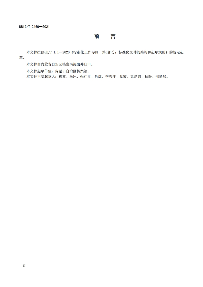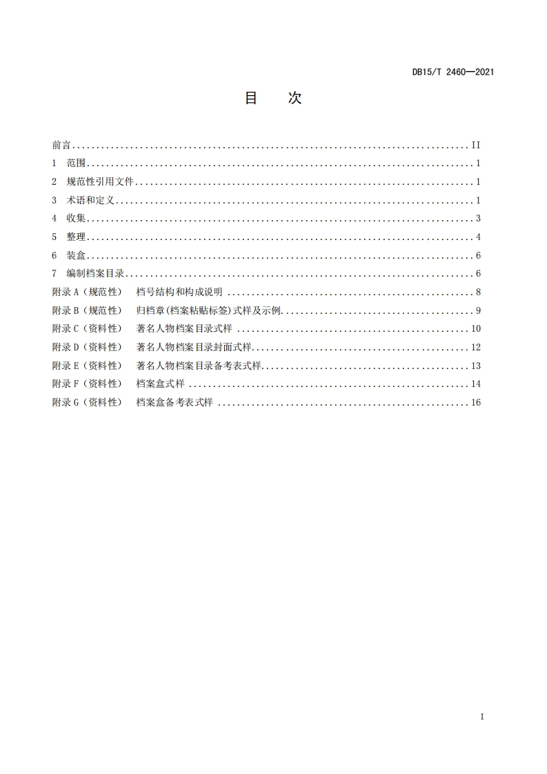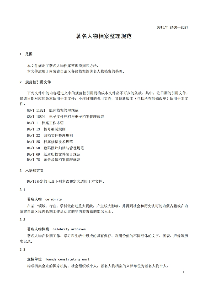 著名人物档案整理规范348072@abc2天前发布关注私信0.55MB20页022著名人物档案整理规范此内容为付费资源,请付费后查看¥23¥36黄金会员免费钻石会员免费立即购买您当前未登录!建议登陆后购买,可保存购买订单付费资源 第1页 / 共20页 第2页 / 共20页 第3页 / 共20页 第4页 / 共20页 第5页 / 共20页 试读已结束,还剩15页,您可下载完整版后进行离线阅读 THE END标准规范 文本预览 ICS01.040.01CCS A 14D815内蒙古自治区地方标准DB15/T2460-2021著名人物档案整理规范The specification of celebrity archival arrangement2021-12-10发布2022-01-10实施内蒙古自治区市场监督管理局发布 查看更多 收起部分 喜欢就支持一下吧收藏