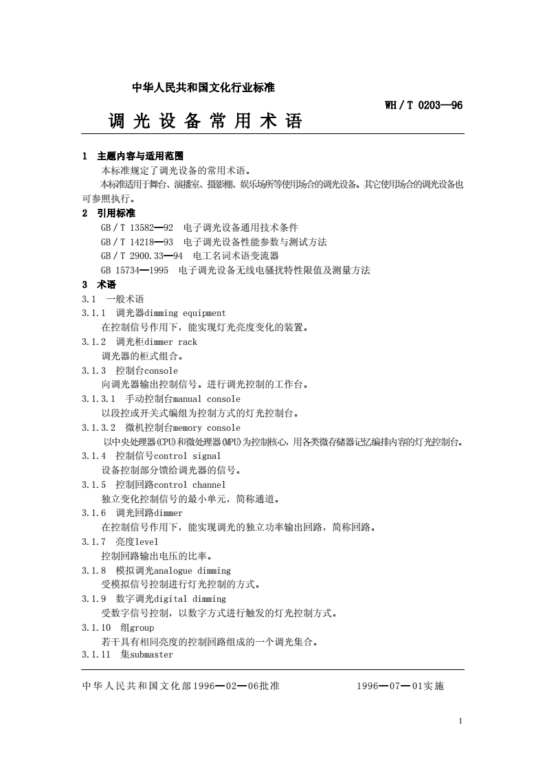 调光设备常用术语348072@abc2天前发布关注私信0.14MB17页029调光设备常用术语此内容为付费资源,请付费后查看¥23¥36黄金会员免费钻石会员免费立即购买您当前未登录!建议登陆后购买,可保存购买订单付费资源 第1页 / 共17页 第2页 / 共17页 第3页 / 共17页 第4页 / 共17页 第5页 / 共17页 试读已结束,还剩12页,您可下载完整版后进行离线阅读 THE END标准规范 文本预览 WH中华人民共和国文化行业标准WH/T0203-96调光设备常用术语19960206发布19960701实施中华人民共和国文化部发布 查看更多 收起部分 喜欢就支持一下吧收藏