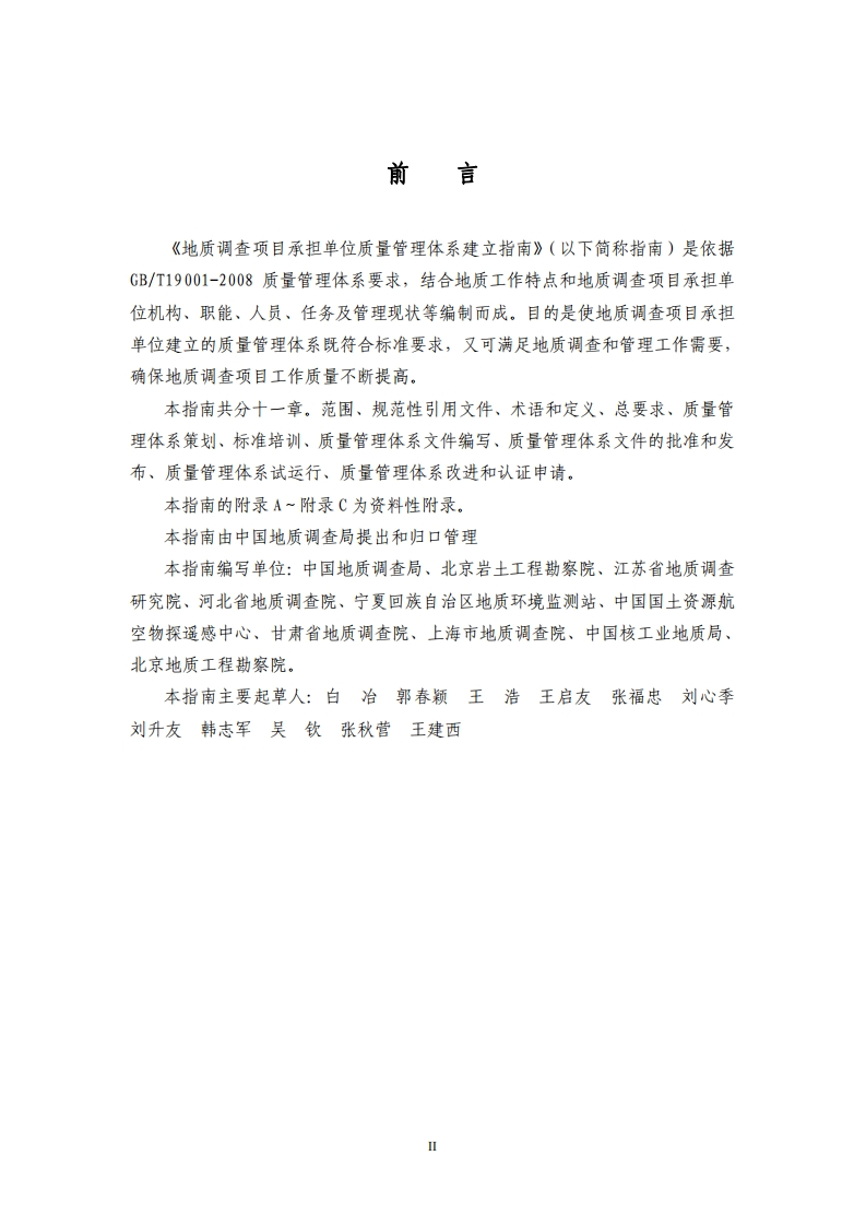 质量管理体系建立指南348072@abc2天前发布关注私信0.47MB163页031质量管理体系建立指南此内容为付费资源,请付费后查看¥23¥36黄金会员免费钻石会员免费立即购买您当前未登录!建议登陆后购买,可保存购买订单付费资源 第1页 / 共163页 第2页 / 共163页 第3页 / 共163页 第4页 / 共163页 第5页 / 共163页 试读已结束,还剩158页,您可下载完整版后进行离线阅读 THE END标准规范 文本预览 地质调查项目承担单位质量管理体系建立指南中国地质调查局2009年8月 查看更多 收起部分 喜欢就支持一下吧收藏