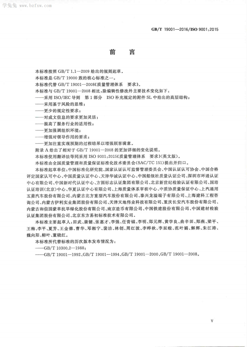 ICS03.120.10A00GB中华人民共和国国家标准GB/T19001-2016/IS09001:2015代替GB/T19001一2008质量管理体系要求Quality management systems-Requirements(IS09001:2015,IDT)2016-12-30发布2017-07-01实施中华人民共和国国家质量监督检验检疫总局中国国家标准化管理委员会发布