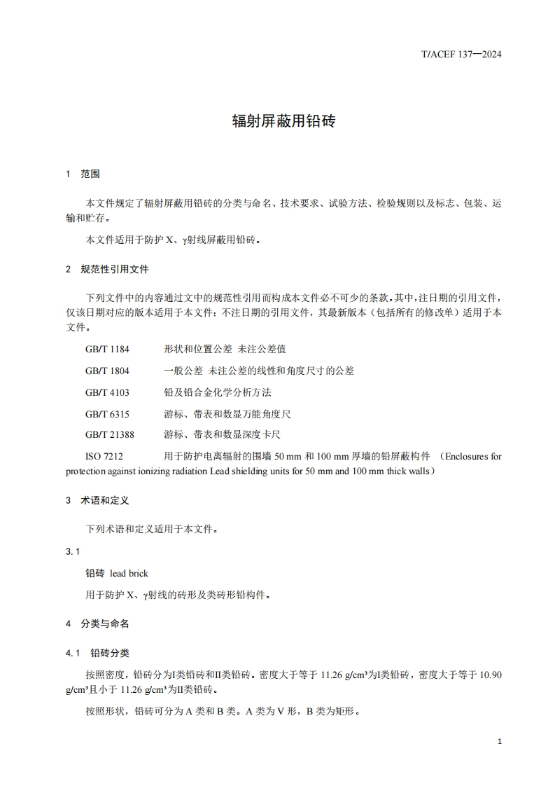 辐射屏蔽用铅砖Leadbricksforradiationshielding_辐射屏蔽用铅砖Leadbricksforradiationshielding348072@abc2天前发布关注私信0.58MB11页040辐射屏蔽用铅砖Leadbricksforradiationshielding_辐射屏蔽用铅砖Leadbricksforradiationshielding此内容为付费资源,请付费后查看¥23¥36黄金会员免费钻石会员免费立即购买您当前未登录!建议登陆后购买,可保存购买订单付费资源 第1页 / 共11页 第2页 / 共11页 第3页 / 共11页 第4页 / 共11页 第5页 / 共11页 试读已结束,还剩6页,您可下载完整版后进行离线阅读 THE END标准规范 文本预览 ICS13.280CSS Z33团体标准T/ACEF137-2024辐射屏蔽用铅砖Lead bricks for radiation shielding2024-3-26发布2024-3-31实施中华环保联合会发布 查看更多 收起部分 喜欢就支持一下吧收藏