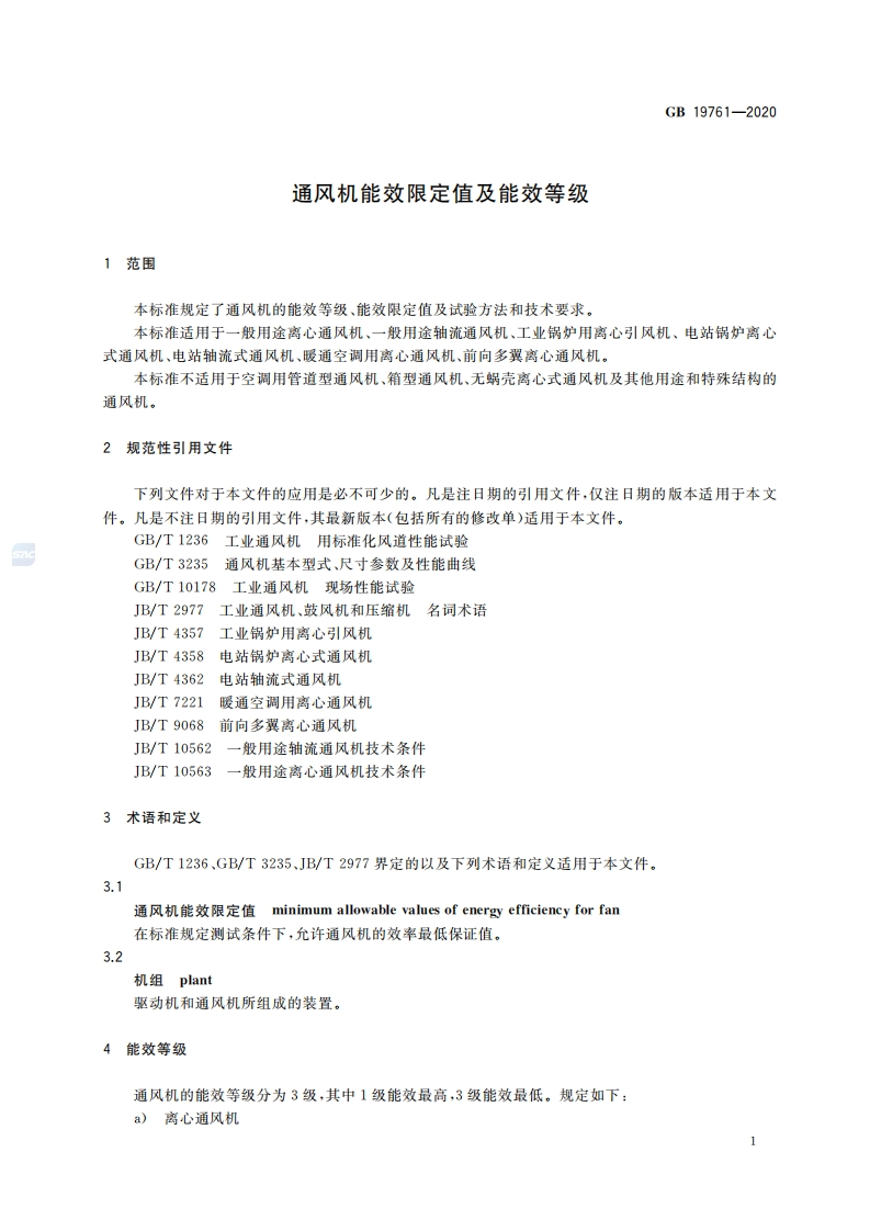 通风机能效限定值及能效等级Minimumallowablevaluesofenergyefficiencyandenergyefficiencygradesforfan_通风机能效限定值及能效等级Minimumallowablevaluesofenergyefficiencyandenergyefficiencygradesforfan348072@abc2天前发布关注私信0.45MB8页047通风机能效限定值及能效等级Minimumallowablevaluesofenergyefficiencyandenergyefficiencygradesforfan_通风机能效限定值及能效等级Minimumallowablevaluesofenergyefficiencyandenergyefficiencygradesforfan此内容为付费资源,请付费后查看¥23¥36黄金会员免费钻石会员免费立即购买您当前未登录!建议登陆后购买,可保存购买订单付费资源 第1页 / 共8页 第2页 / 共8页 第3页 / 共8页 第4页 / 共8页 第5页 / 共8页 试读已结束,还剩3页,您可下载完整版后进行离线阅读 THE END标准规范 文本预览 ICS27.010F01中华人民共和国国家标准GB19761-2020代替GB19761一2009通风机能效限定值及能效等级Minimum allowable values of energy efficiency andenergy efficiency grades for fan2020-05-29发布2021-06-01实施国家市场监督管理总局发布国家标准化管理委员会 查看更多 收起部分 喜欢就支持一下吧收藏