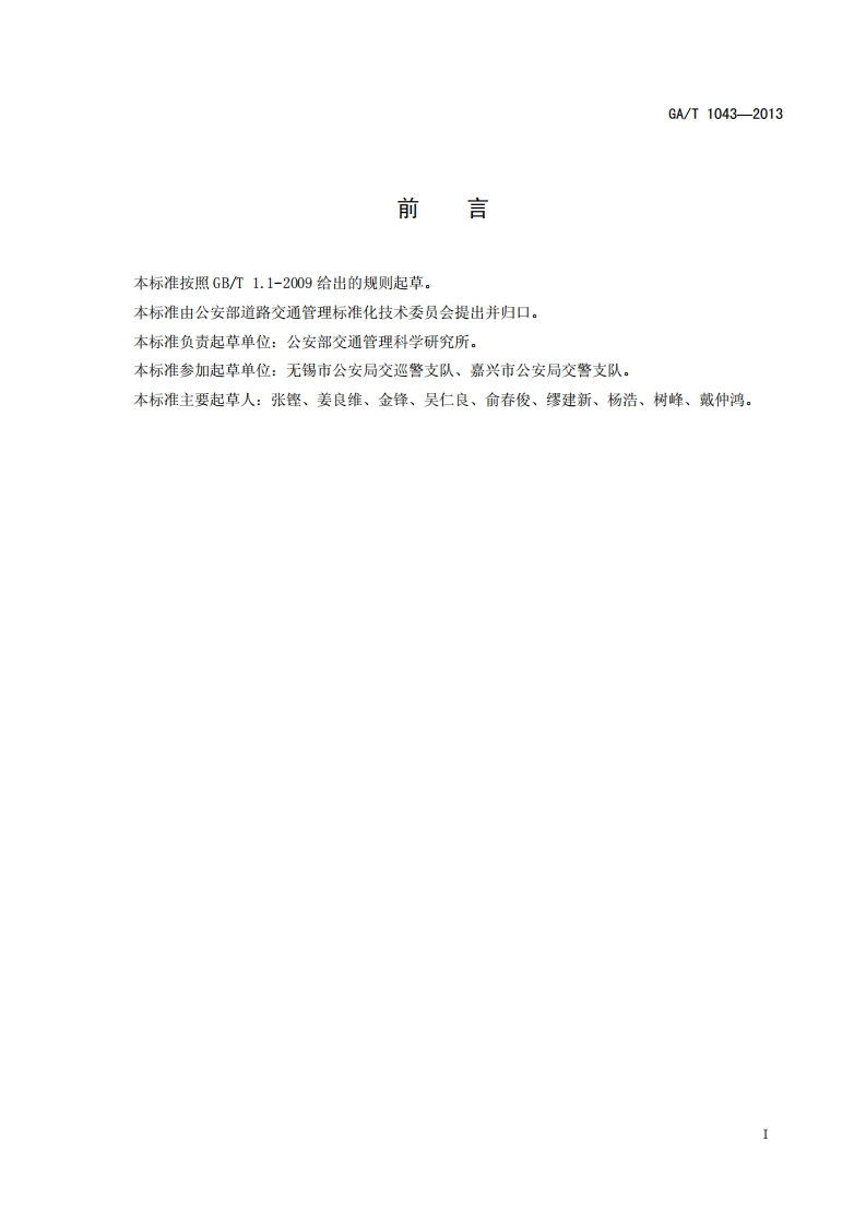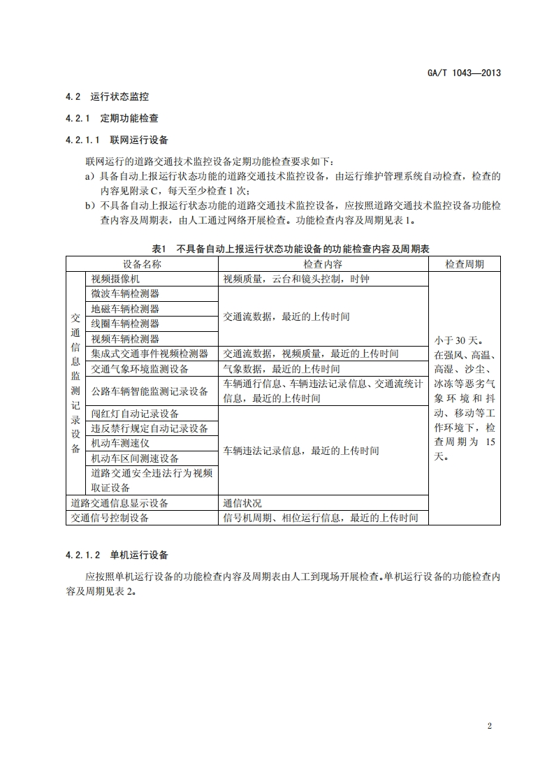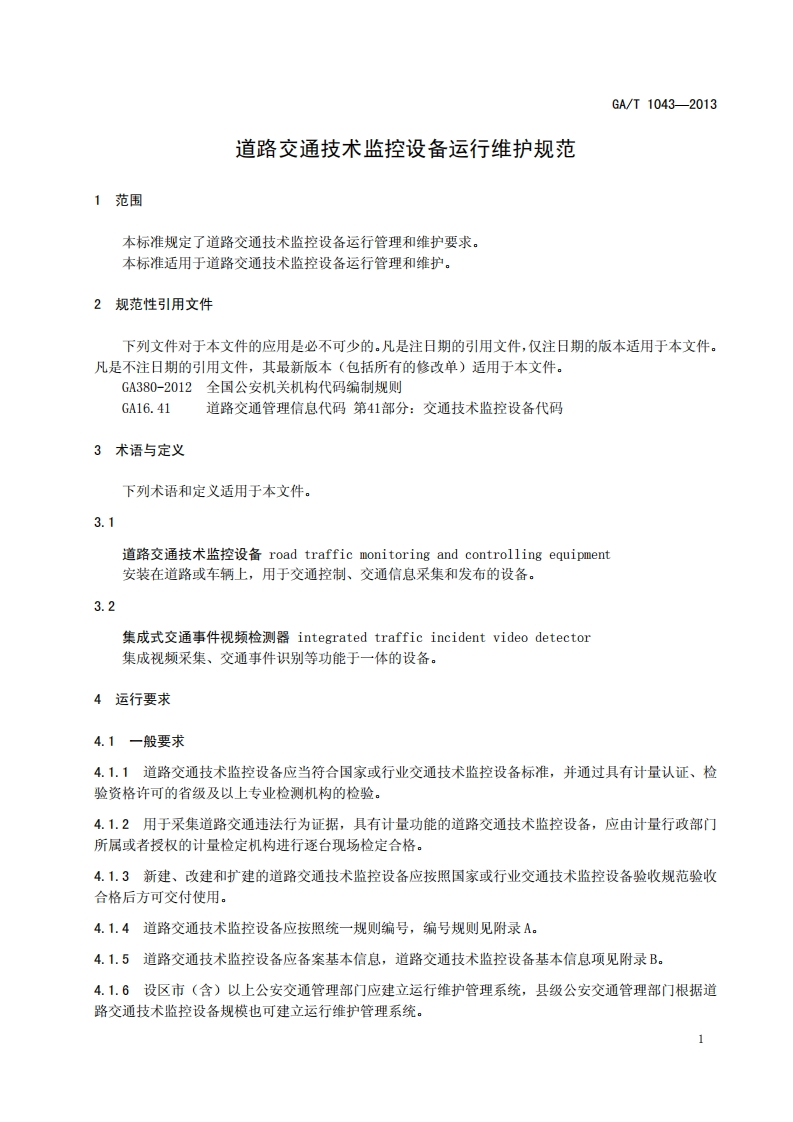道路交通技术监控设备运行维护规范Specificationsforoperationandmaintenanceofroadtrafficmonitoringandcontrollingequipment_道路交通技术监控设备运行维护规范Specificationsforoperationandmaintenanceofroadtrafficmonitoringandcontrollingequipment348072@abc2天前发布关注私信0.31MB11页038道路交通技术监控设备运行维护规范Specificationsforoperationandmaintenanceofroadtrafficmonitoringandcontrollingequipment_道路交通技术监控设备运行维护规范Specificationsforoperationandmaintenanceofroadtrafficmonitoringandcontrollingequipment此内容为付费资源,请付费后查看¥23¥36黄金会员免费钻石会员免费立即购买您当前未登录!建议登陆后购买,可保存购买订单付费资源 第1页 / 共11页 第2页 / 共11页 第3页 / 共11页 第4页 / 共11页 第5页 / 共11页 试读已结束,还剩6页,您可下载完整版后进行离线阅读 THE END标准规范 文本预览 1CS03.220.20R80GA中华人民共和国公共安全行业标准GA/T1043-2013道路交通技术监控设备运行维护规范Specifications for operation and maintenance of road traffic monitoring andcontrolling equipment2013-01-16发布2013-03-01实施中华人民共和国公安部发布 查看更多 收起部分 喜欢就支持一下吧收藏