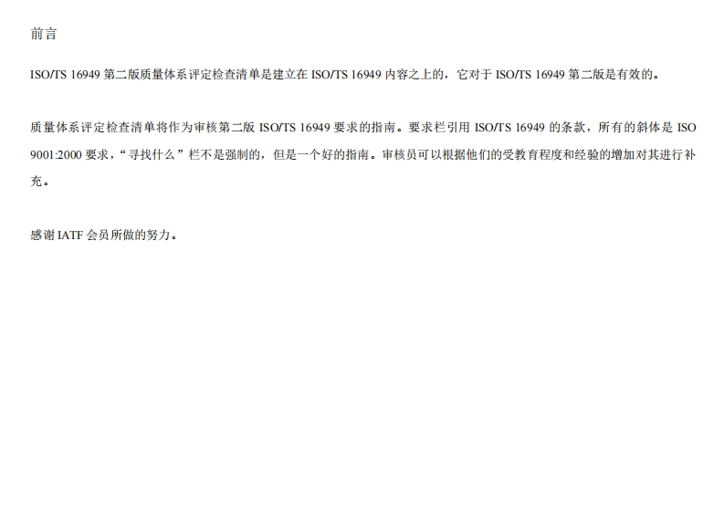 TS体系评定检查清单348072@abc4个月前发布关注私信0.28MB30页039TS体系评定检查清单此内容为付费资源,请付费后查看¥13¥23黄金会员免费钻石会员免费立即购买您当前未登录!建议登陆后购买,可保存购买订单付费资源 第1页 / 共30页 第2页 / 共30页 试读已结束,还剩28页,您可下载完整版后进行离线阅读 THE END标准规范 文本预览 质量体系评定检查清单SOS16949的检查清单 查看更多 收起部分 喜欢就支持一下吧收藏