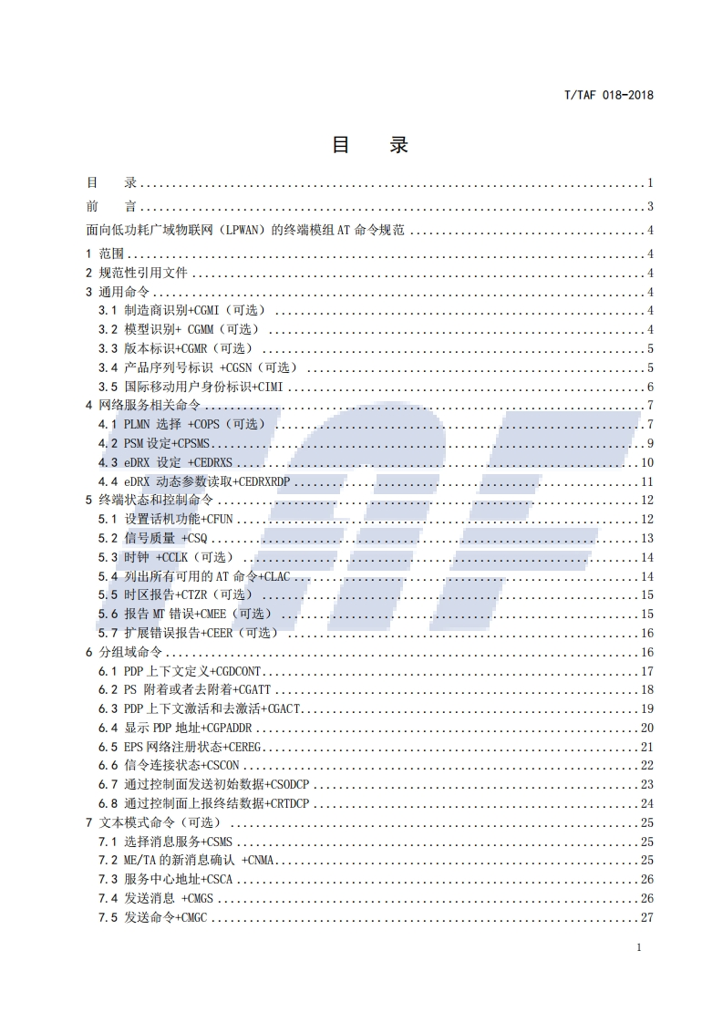 TTAF018-2018面向低功耗广域物联网(LPWAN)的终端模组AT命令规范348072@abc4个月前发布关注私信0.63MB37页025TTAF018-2018面向低功耗广域物联网(LPWAN)的终端模组AT命令规范此内容为付费资源,请付费后查看¥13¥23黄金会员免费钻石会员免费立即购买您当前未登录!建议登陆后购买,可保存购买订单付费资源 第1页 / 共37页 第2页 / 共37页 试读已结束,还剩35页,您可下载完整版后进行离线阅读 THE END标准规范 文本预览 1CS33.050M30团体标准T/TAF018-2018面向低功耗广域物联网(LPWAN)的终端模组AT命令规范AT Command for the Module of Low-Power Wide-Area Network(LPWAN)BasedTerminal2018-6-19发布2018-6-19实施电信终端产业协会发布 查看更多 收起部分 喜欢就支持一下吧收藏