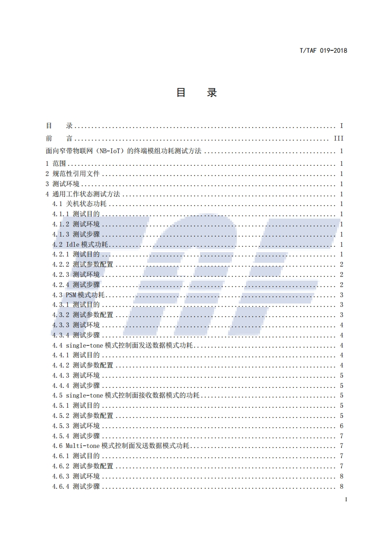 TTAF019-2018面向窄带物联网(NB-IoT)的终端模组功耗测试方法348072@abc4个月前发布关注私信0.44MB18页029TTAF019-2018面向窄带物联网(NB-IoT)的终端模组功耗测试方法此内容为付费资源,请付费后查看¥13¥23黄金会员免费钻石会员免费立即购买您当前未登录!建议登陆后购买,可保存购买订单付费资源 第1页 / 共18页 第2页 / 共18页 试读已结束,还剩16页,您可下载完整版后进行离线阅读 THE END标准规范 文本预览 1CS33.050M30团体标T/TAF019-2018面向窄带物联网(NB-IoT)终端模组功耗测试方法Specification for Power of Narrow Band Internet of Things(NB-IoT)Based Terminaland Module2018-06-19发布2018-06-19实施电信终端产业协会发布 查看更多 收起部分 喜欢就支持一下吧收藏